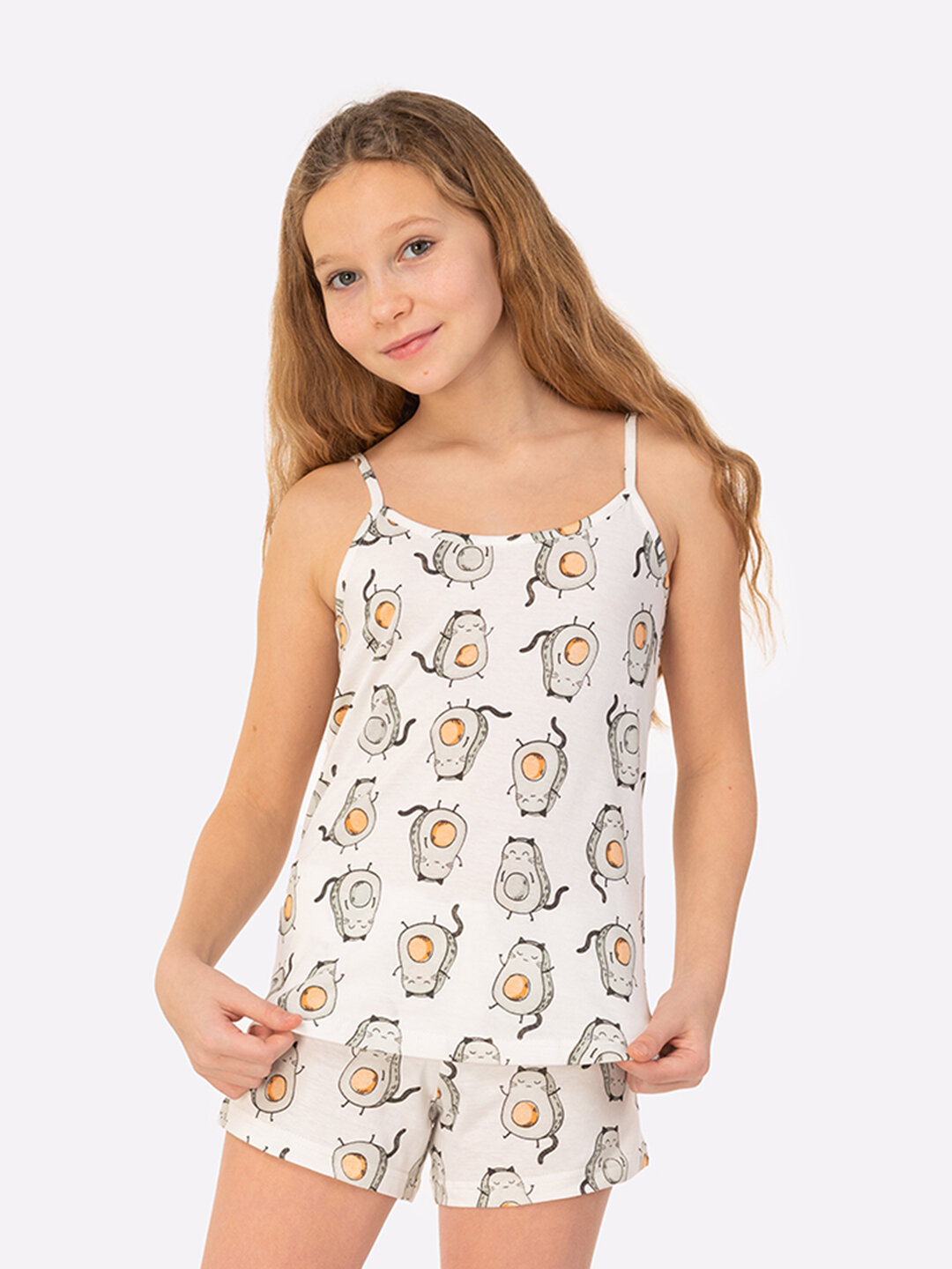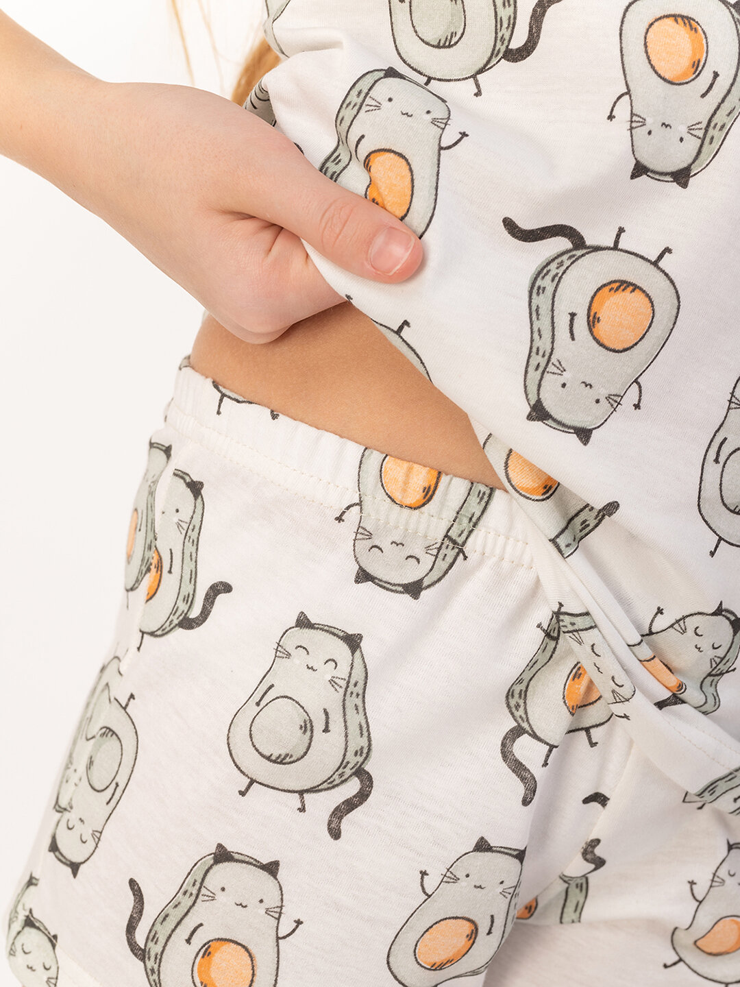 Пижама для девочки, подростка с шортами, пижама детская HappyFox, HF410SP размер 134, цвет авокадо.молочный