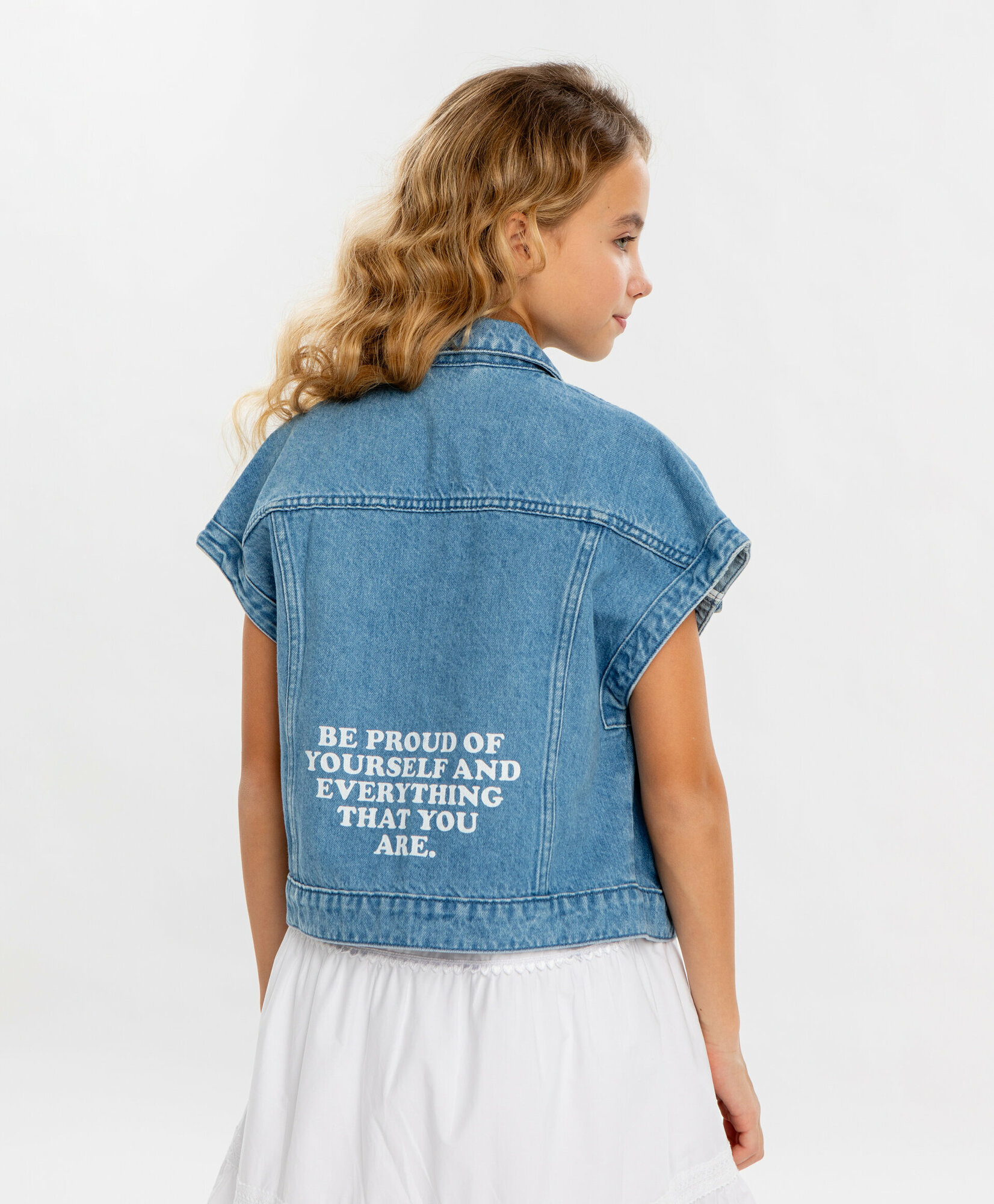 Жилет джинсовый голубой для девочки Button Blue, размер 134, мод. 124BBGJC47031800