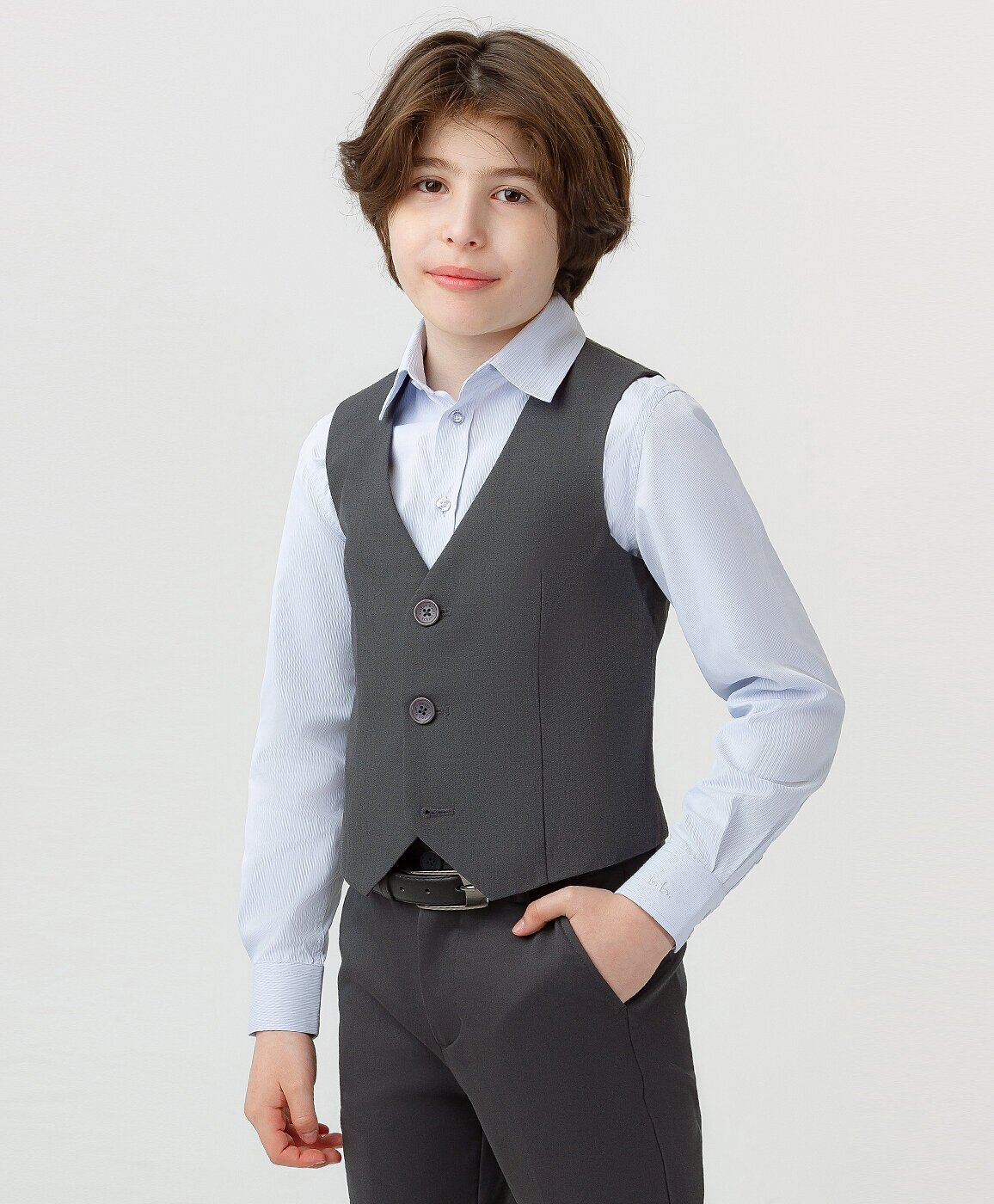 Жилет классический на пуговицах серый Button Blue, для мальчиков, размер 140, мод. 223BBBS47010100