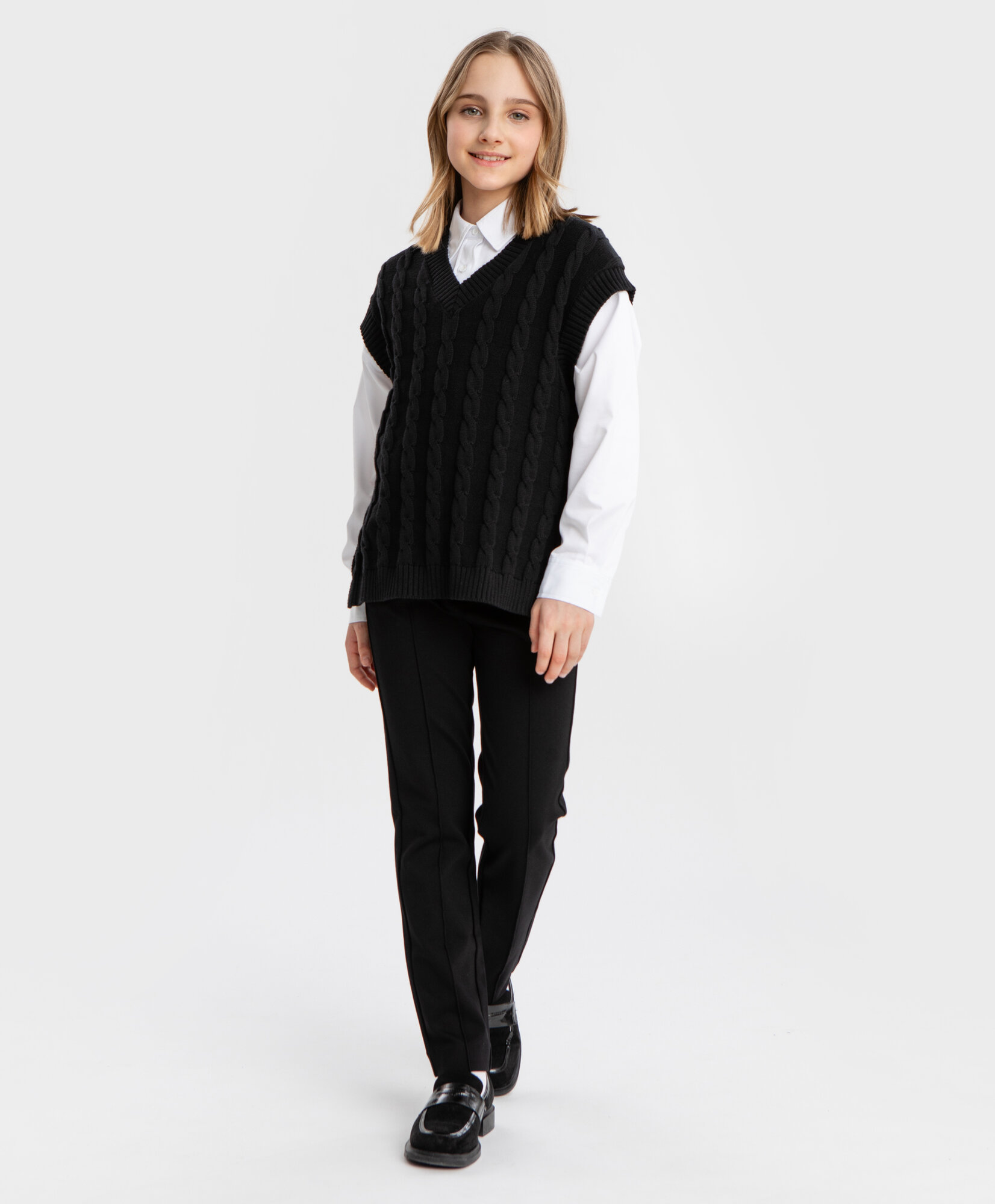 Жилет с узором косами черный Button Blue, р. 158, мод. 224BBGS30010800