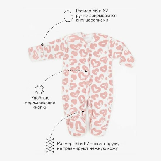 Комплект комбинезонов (слипов) детских с шапочкой Amarobaby Nature, розовый, сердечки, размер 56