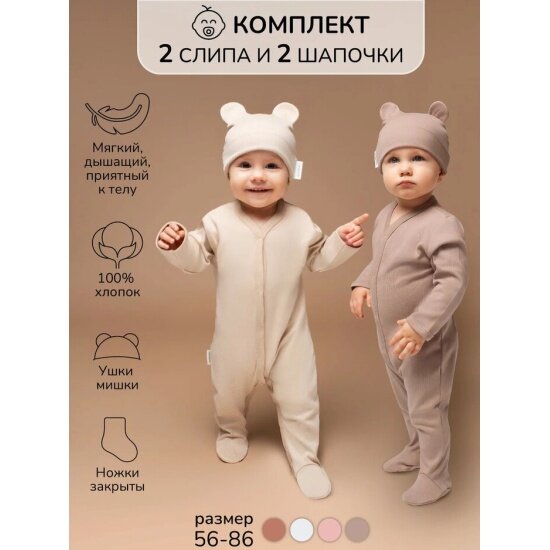 СохранитьКомплект комбинезонов (слипов) детских с шапочкой Amarobaby Nature, бежевый/коричневый, размер 80 интересное: