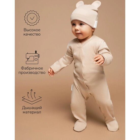 Комплект комбинезонов (слипов) детских с шапочкой Amarobaby Nature, бежевый/коричневый, размер 56