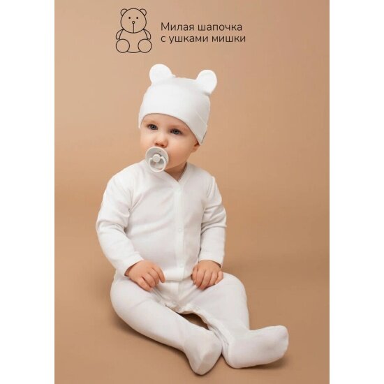 Комплект комбинезонов (слипов) детских с шапочкой Amarobaby Nature, белый, леопард, размер 62