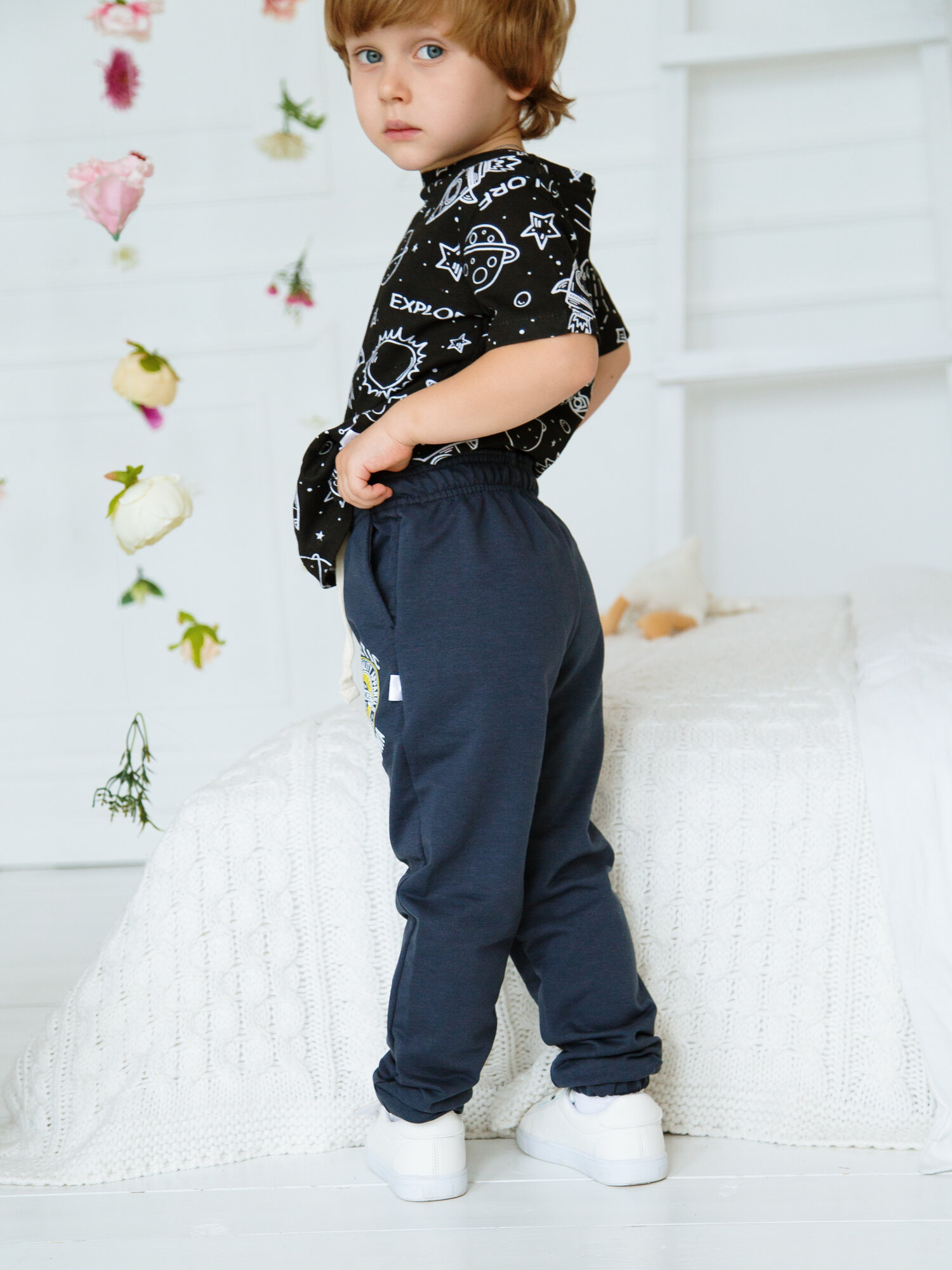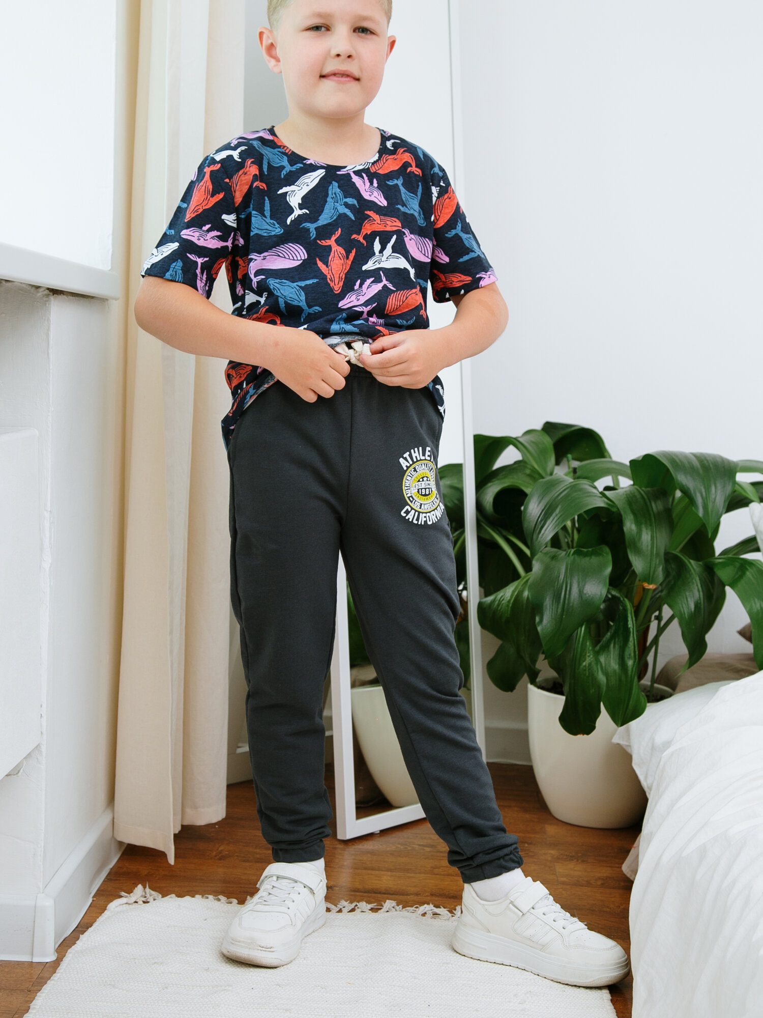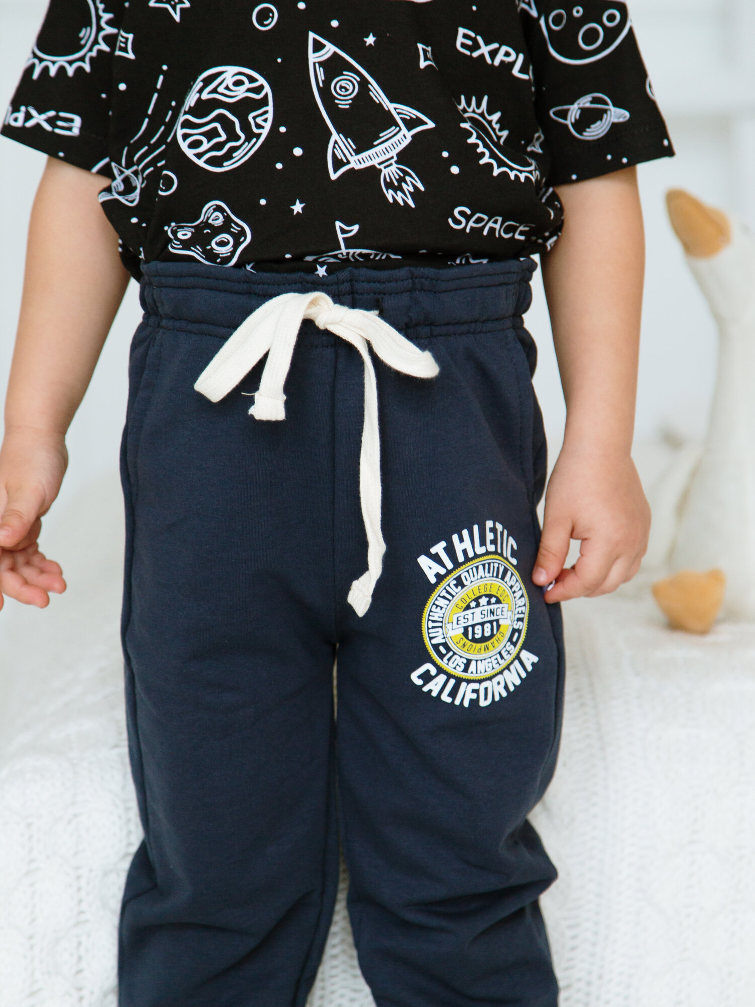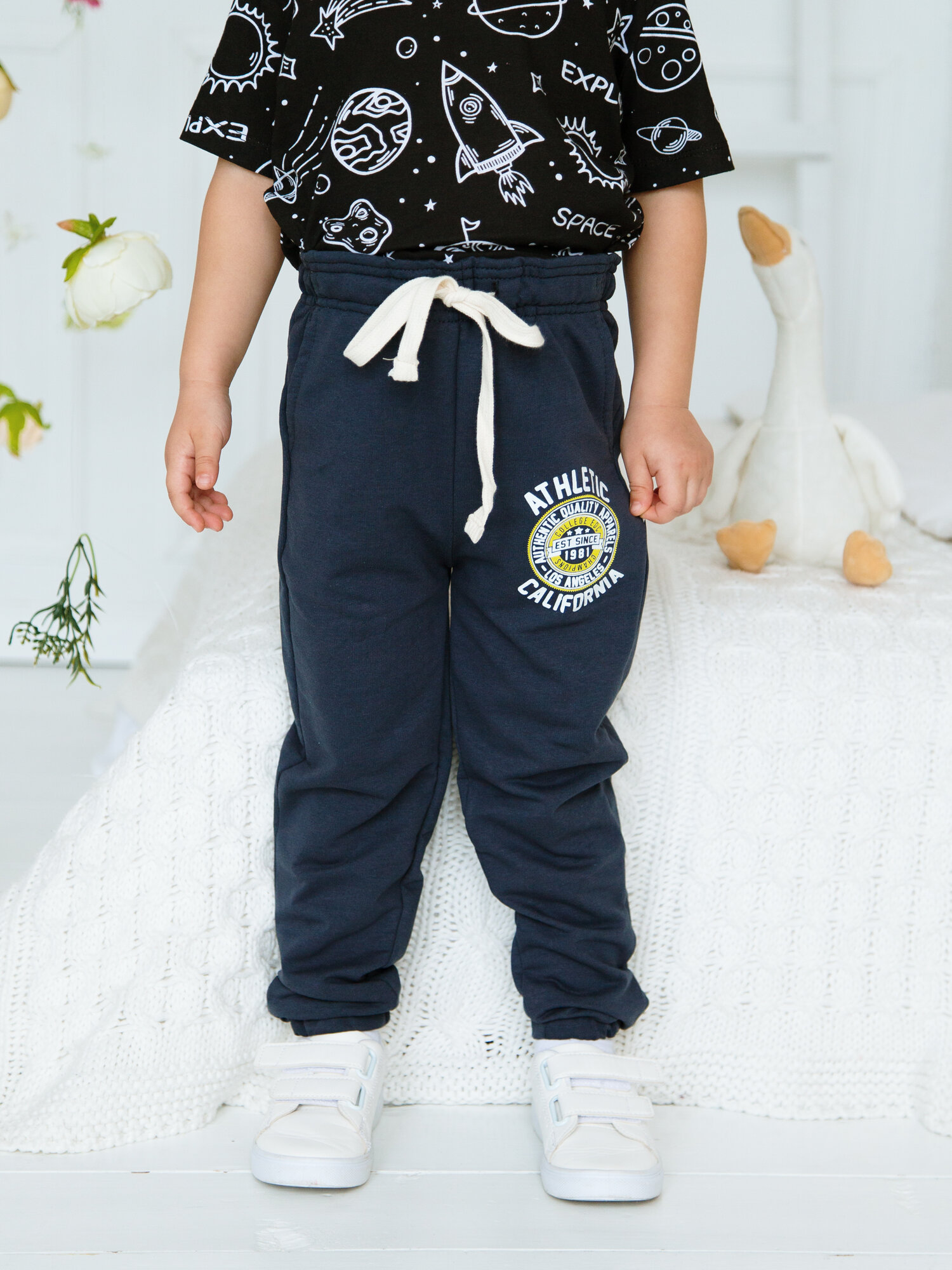 Брюки спортивные для мальчика ohana kids/Детские штаны/Джоггеры для мальчика/Для дома/Для спортивного зала, размер 134-140 интересное: