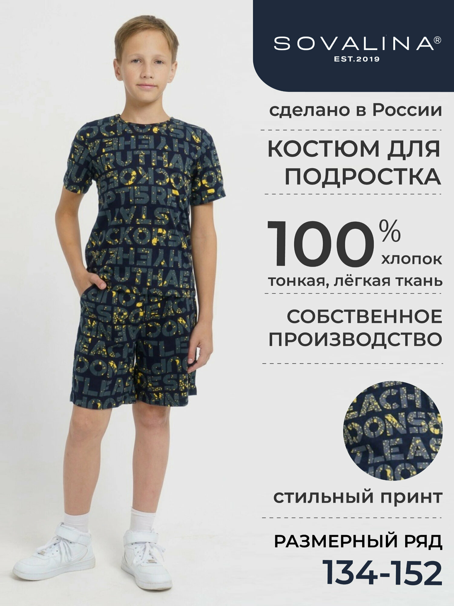 Комплект одежды SOVALINA Желтые буквы, размер 152, темно-синий/желтый