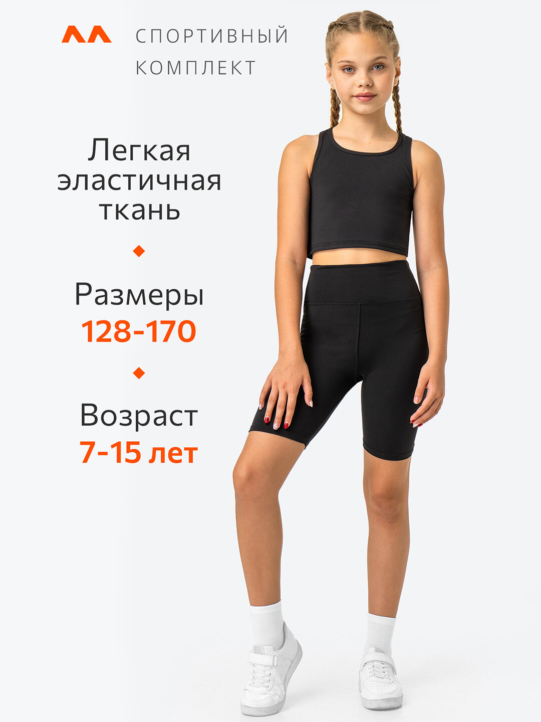 Купить Костюм для девоки спортивный с бриджами HappyFox HFTEV1152 черный 170