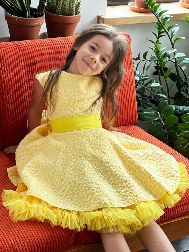 Платье для девочки праздничное бушон ST36, цвет желтый (128-134)