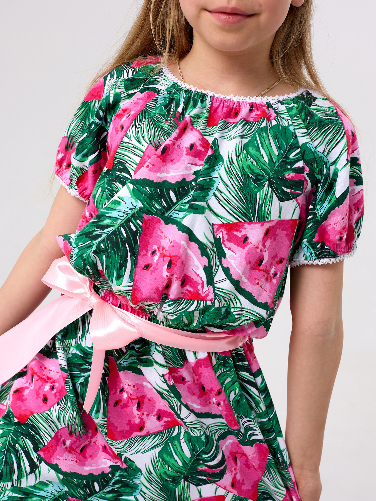 Летнее платье для девочки, Дети в Цвете, цвет розовый, размер 128