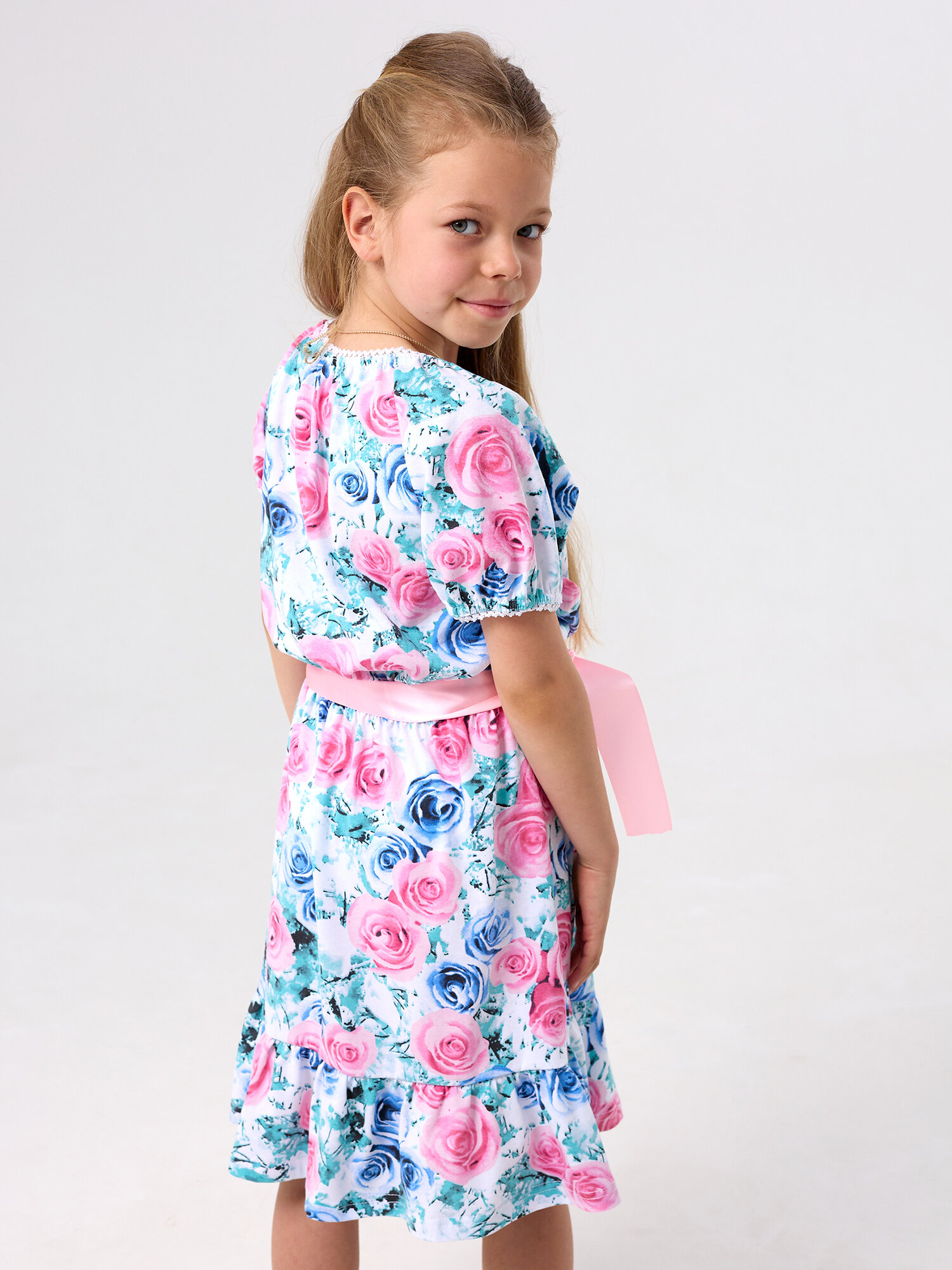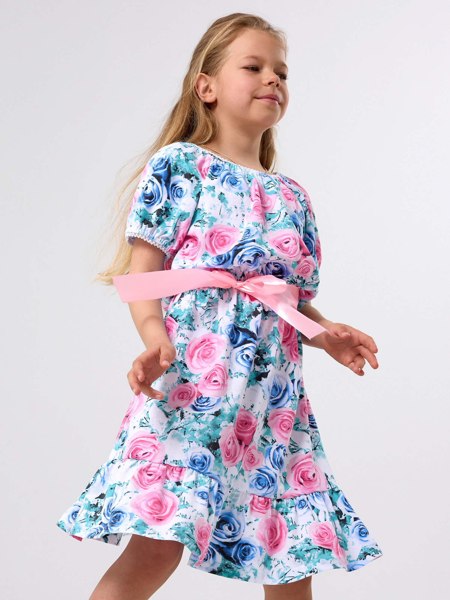Летнее платье для девочки, Дети в Цвете, цвет розовый, размер 128