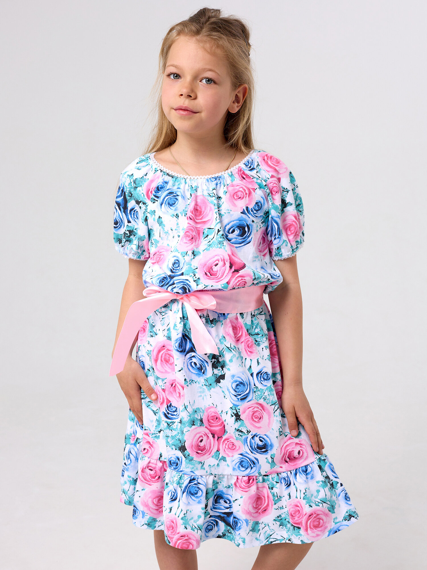 Летнее платье для девочки, Дети в Цвете, цвет розовый, размер 122