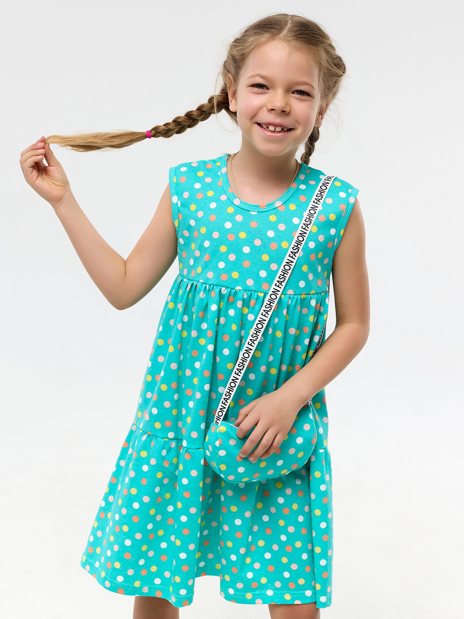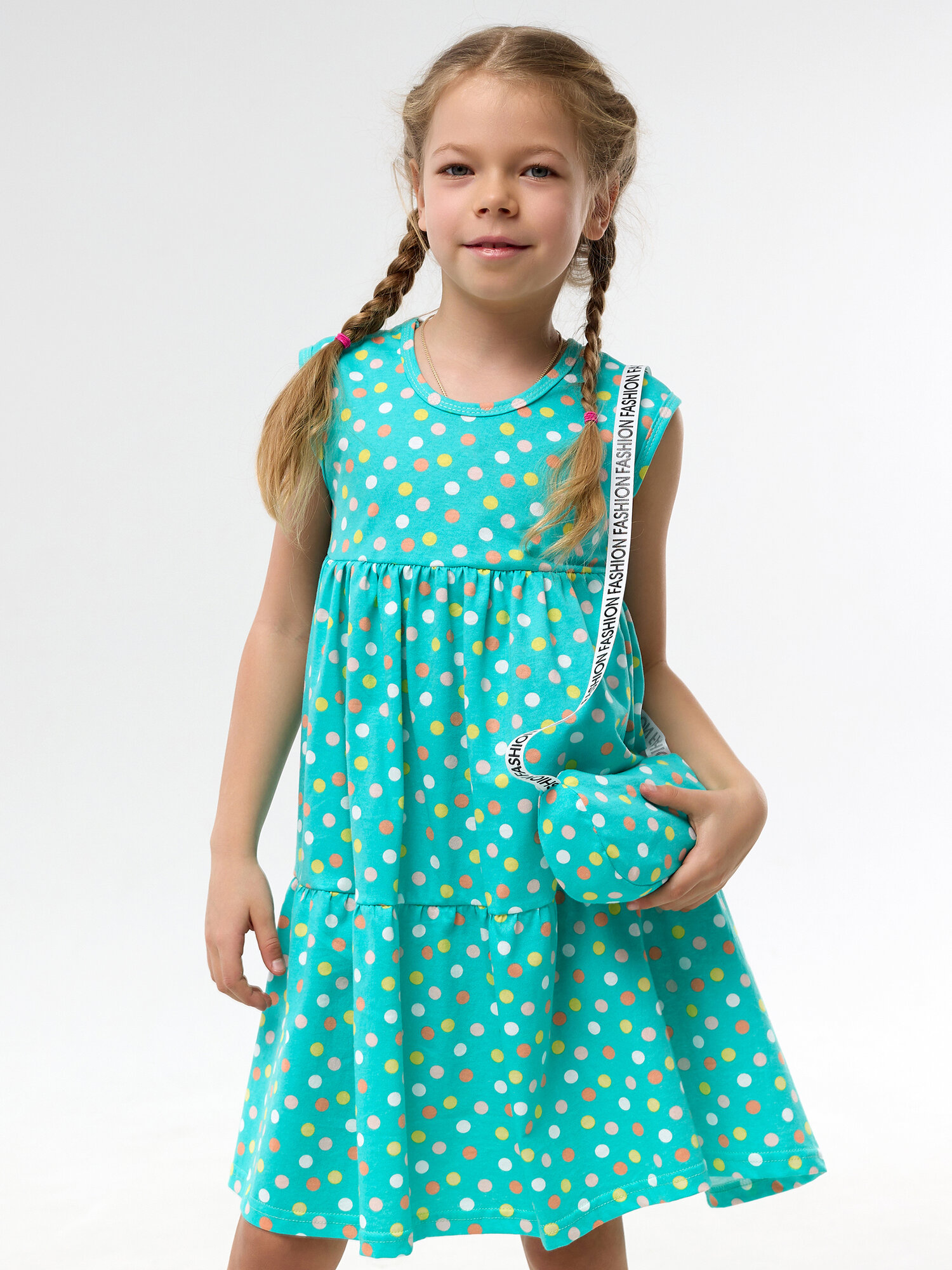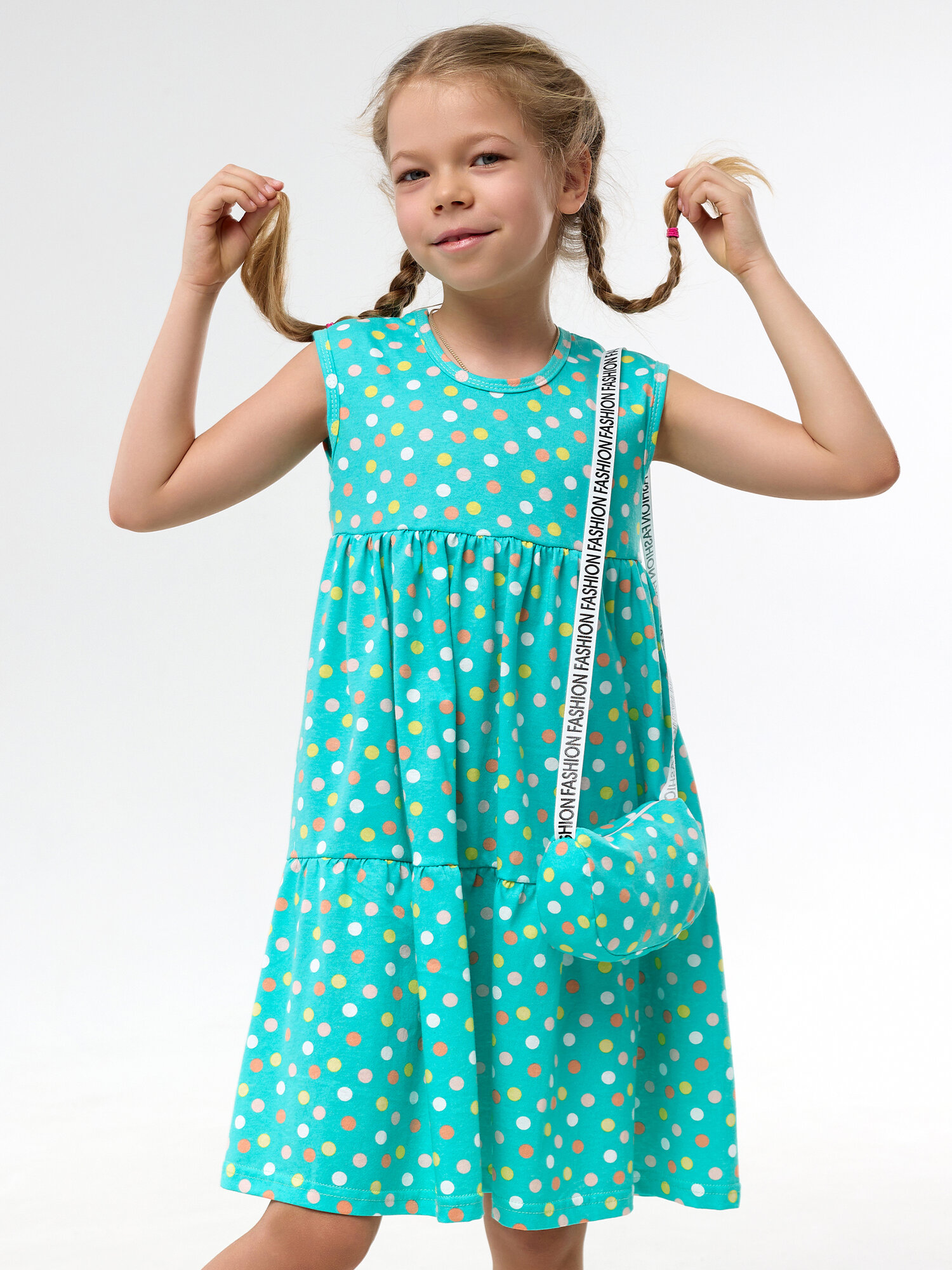 СохранитьЛетний сарафан с сумочкой для девочки, Дети в цвете, цвет бирюзовый, размер 98 интересное: