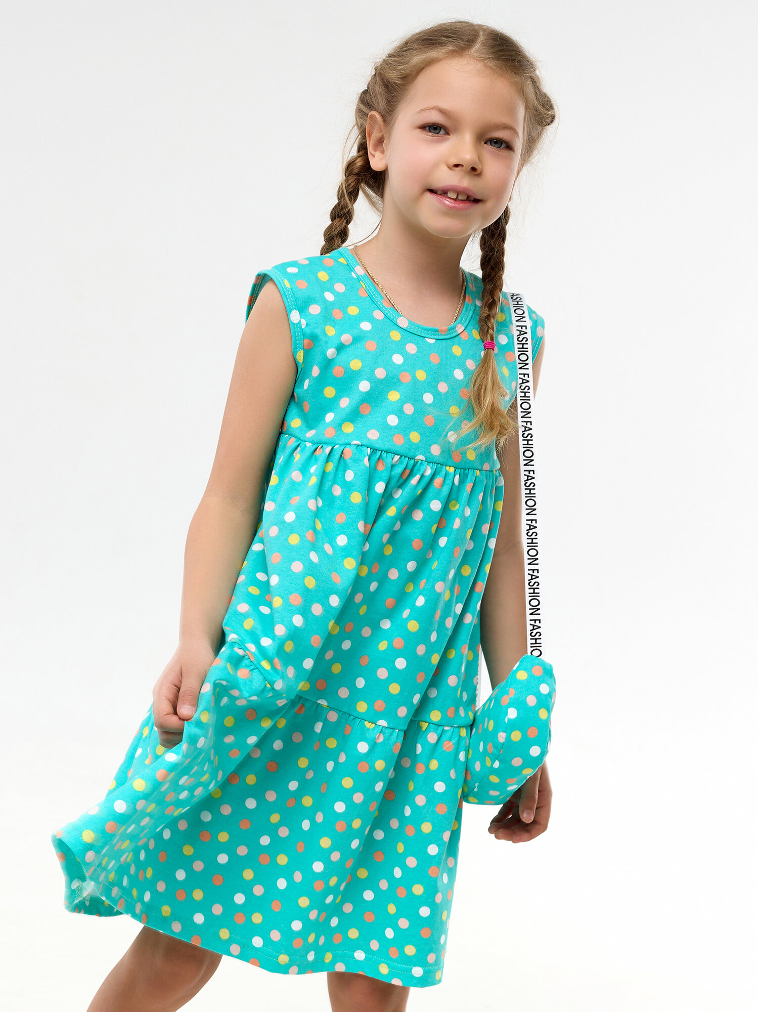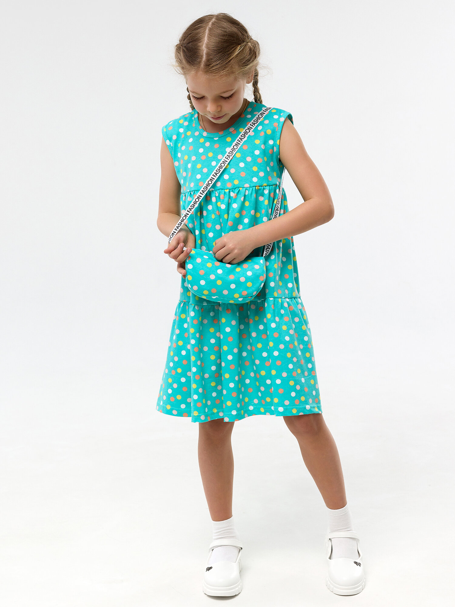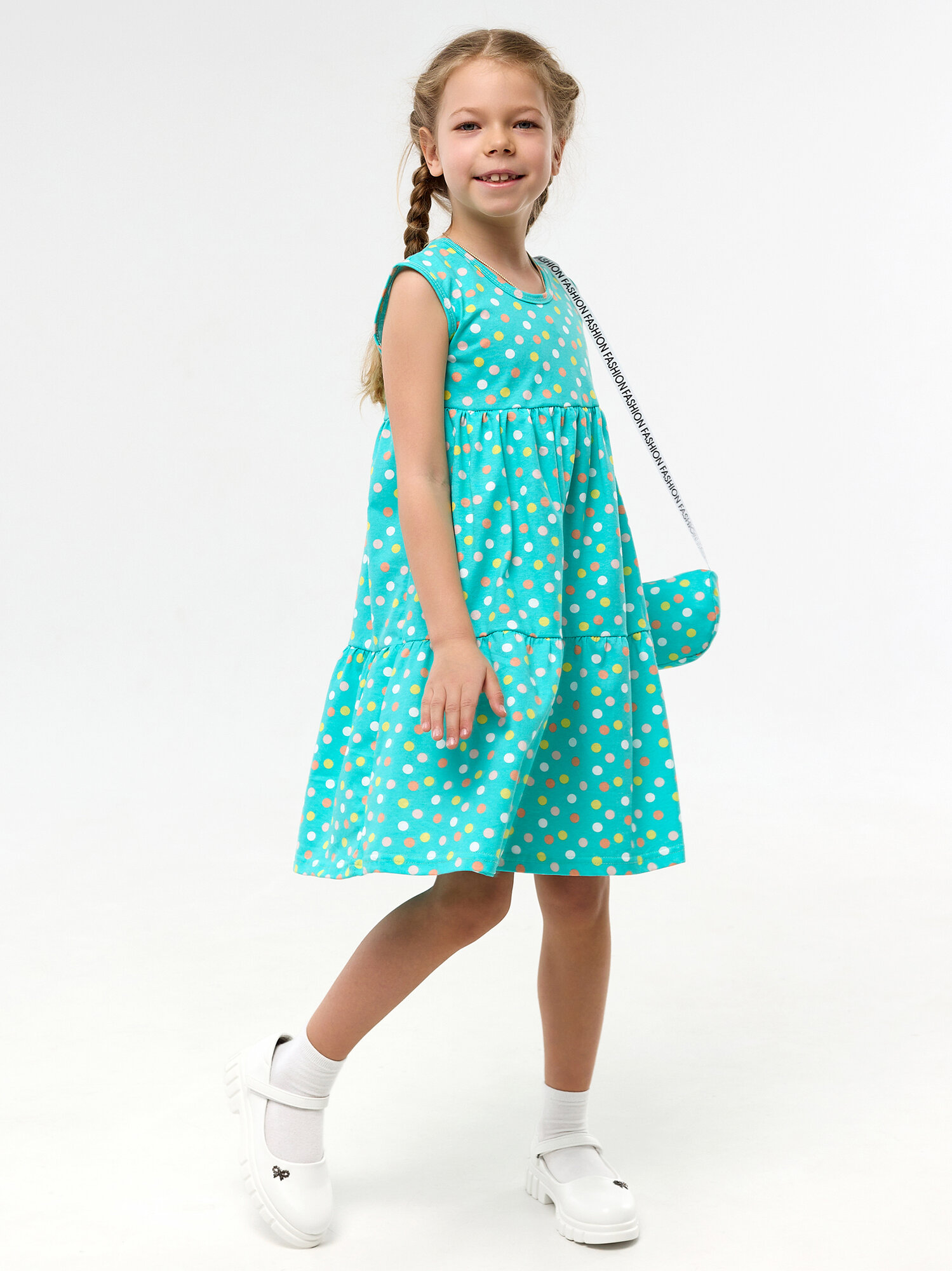 СохранитьЛетний сарафан с сумочкой для девочки, Дети в цвете, цвет бирюзовый, размер 98 интересное: