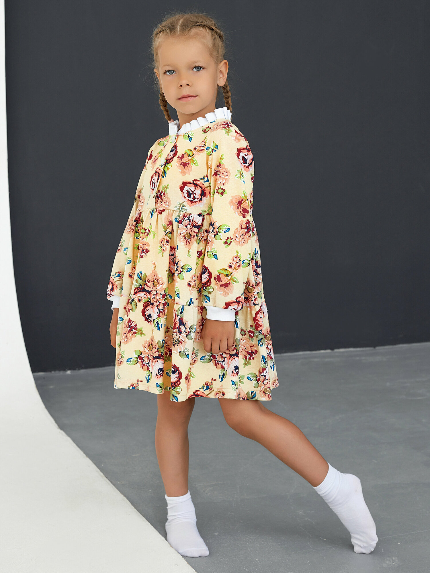 Легкое платье с длинным рукавом, светло-желтое, Дети в цвете, размер 30-110