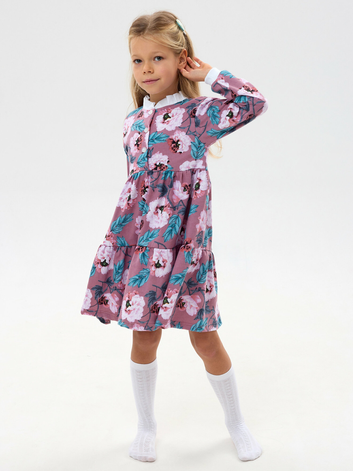 Купить Легкое платье с длинным рукавом, розовый пион, размер 110