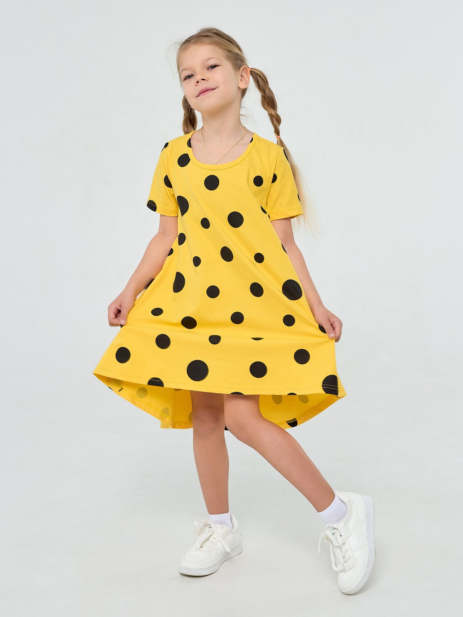 Платье-туника желтый горох, размер 116