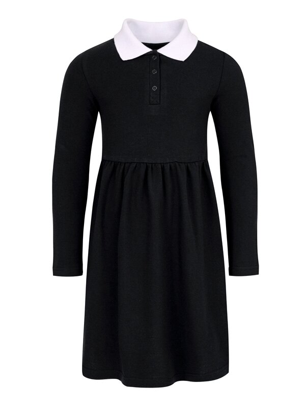 Платье для девочки школьное с воротником поло Апрель 1ДПД4307090/1386/600/*/*/*/*/* черный,белый 88-164