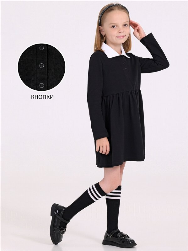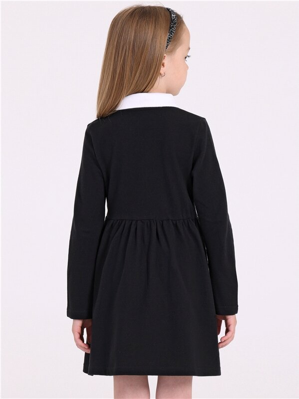 Платье для девочки школьное черное с воротником поло Апрель 1ДПД4307090/989/600/*/*/*/*/* черный,белый 80-152