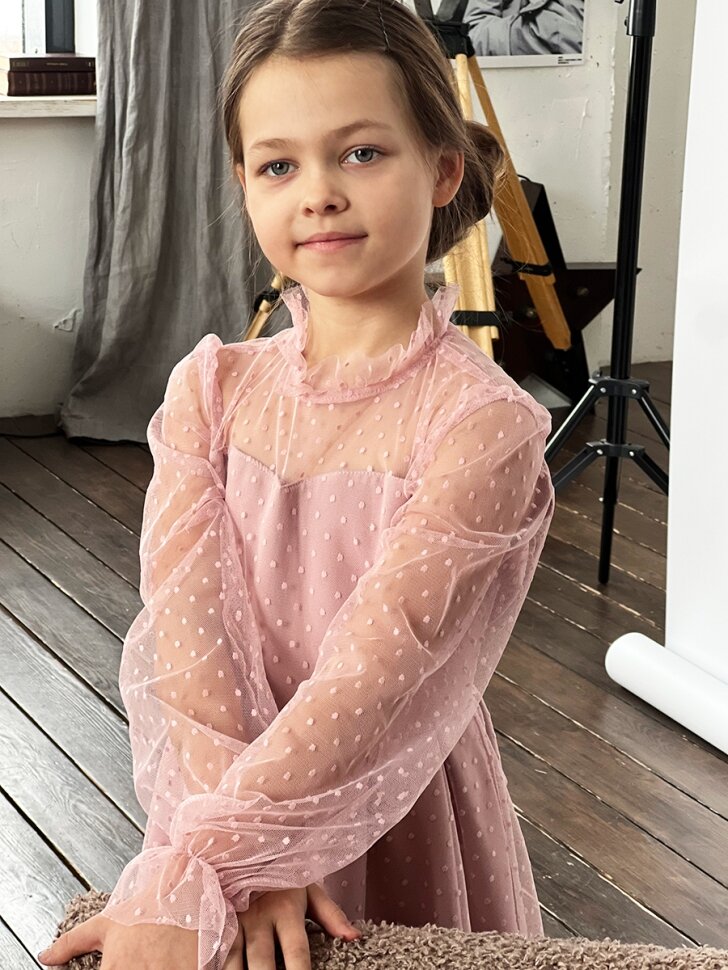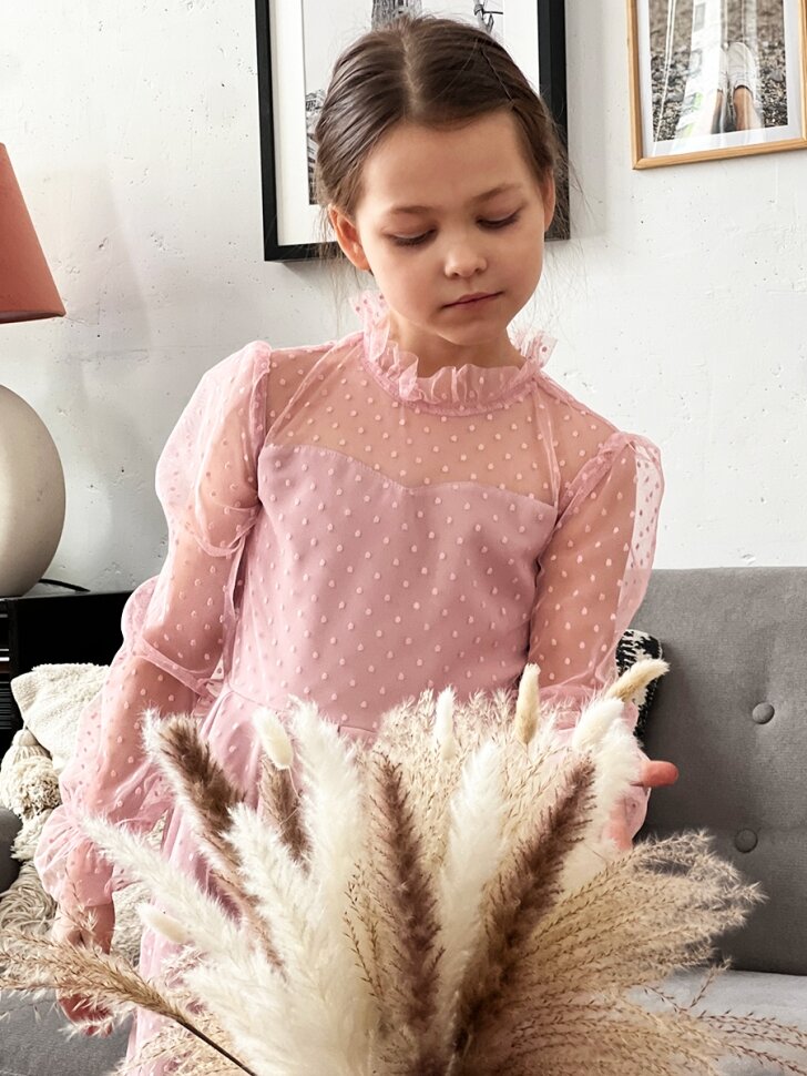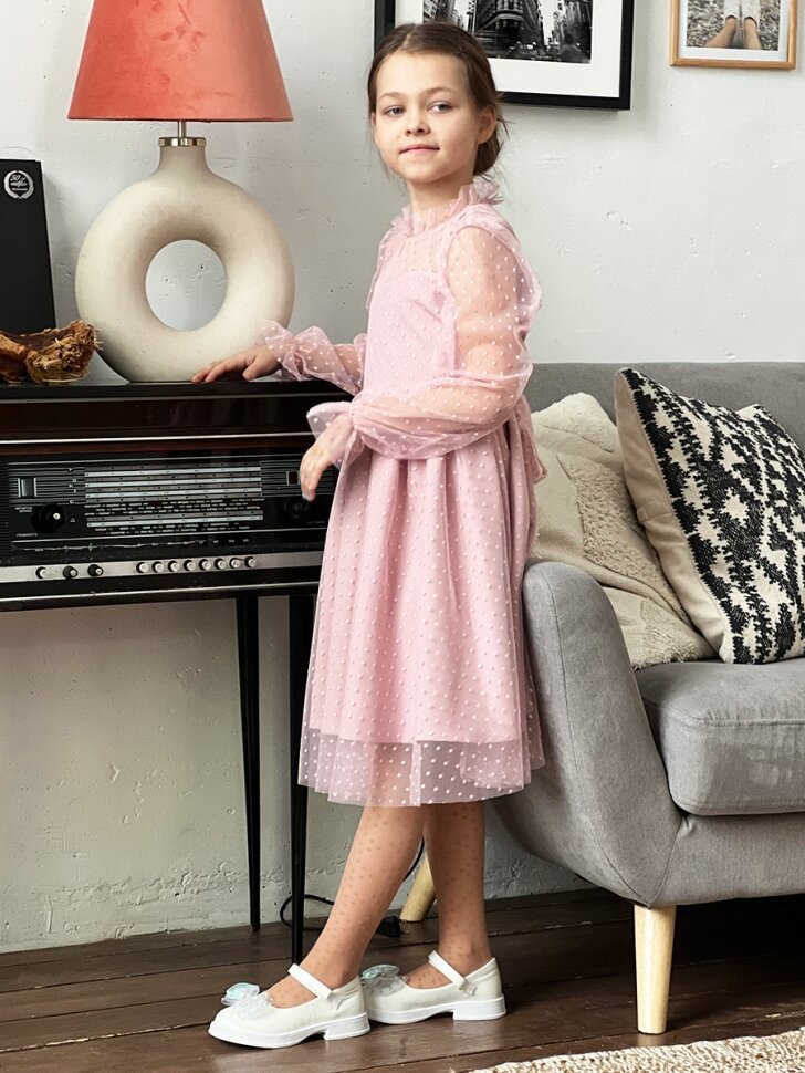 Купить Платье для девочки нарядное бушон ST77, цвет пудровый (116-122)