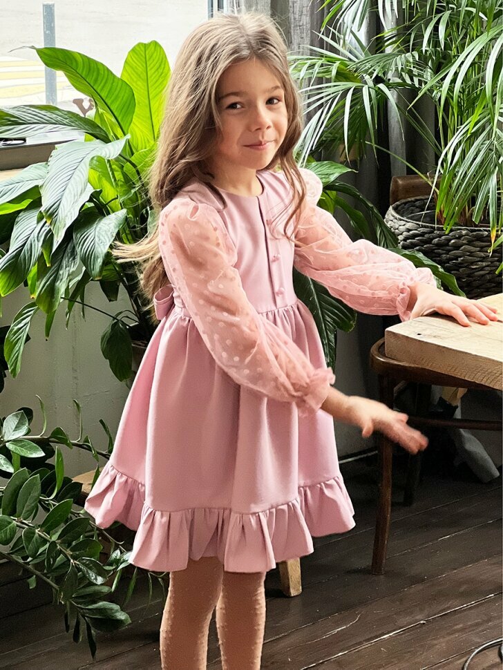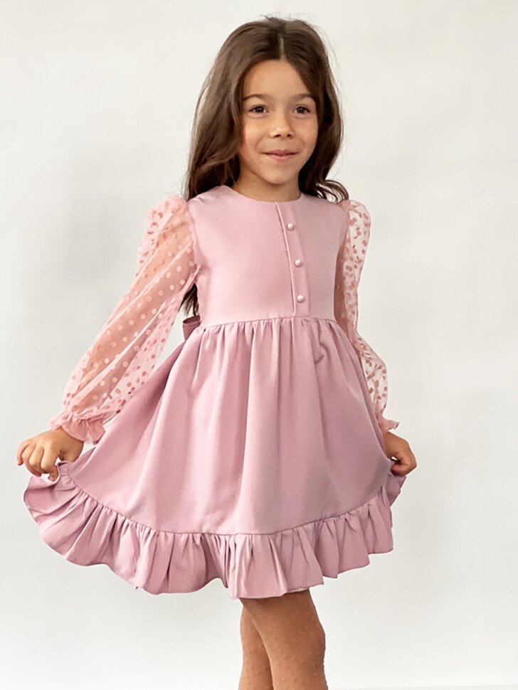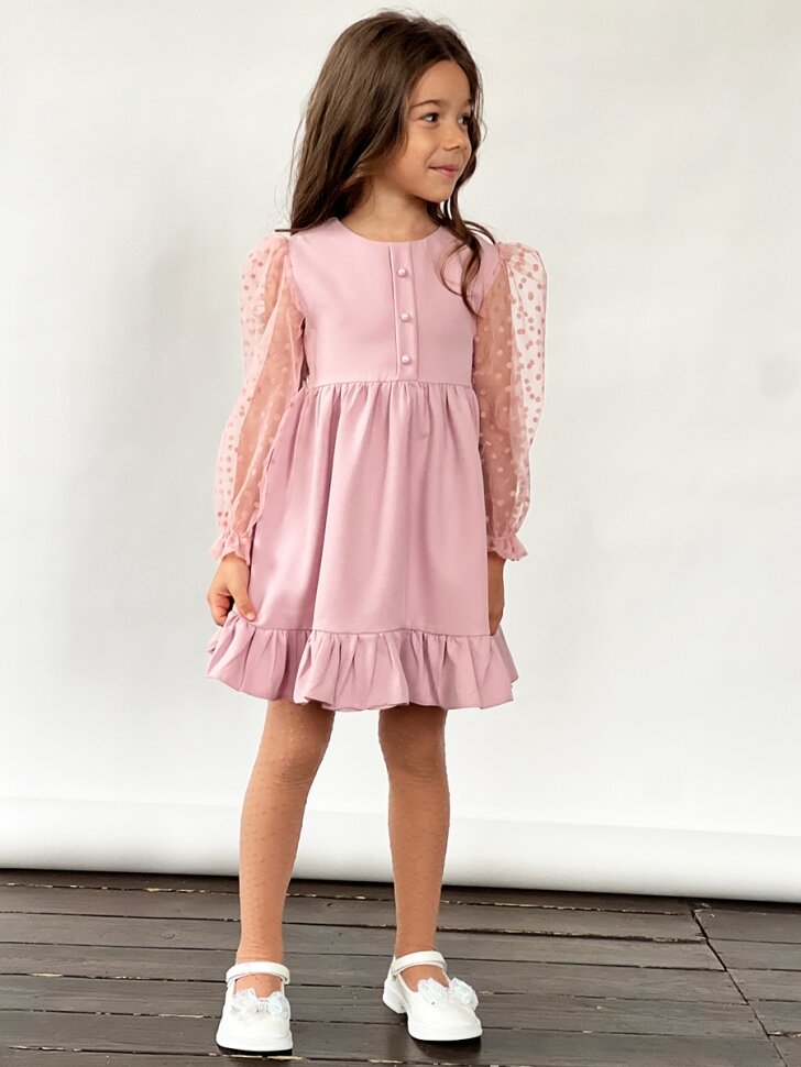 Платье для девочки нарядное бушон ST52, цвет пудра (122-128)