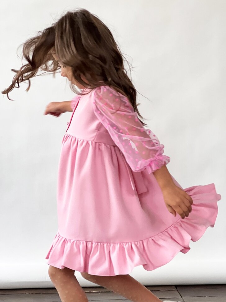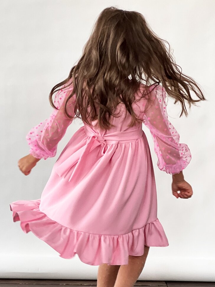 Платье для девочки нарядное бушон ST52, цвет розовый (98-104)