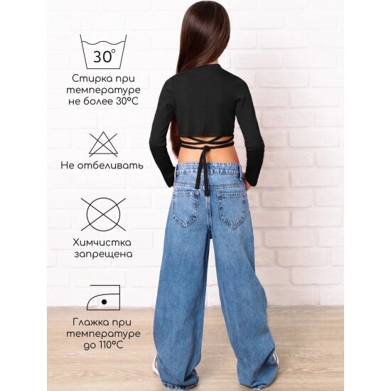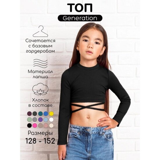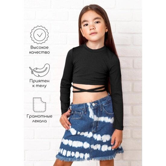 Топ для девочки с длинными рукавами на завязках Amarobaby Generation, черный, размер 128