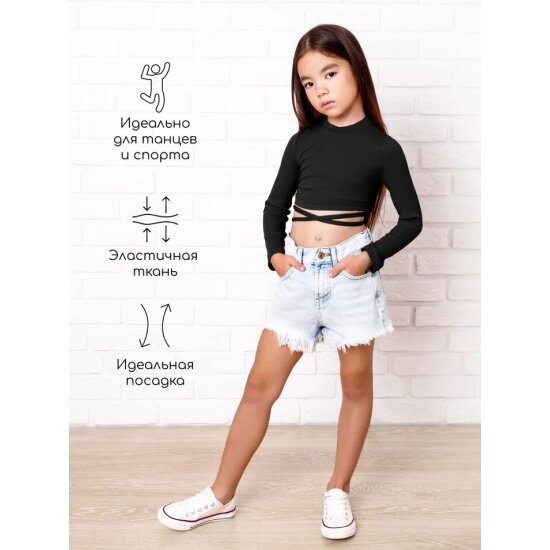 Купить Топ для девочки с длинными рукавами на завязках Amarobaby Generation, черный, размер 152