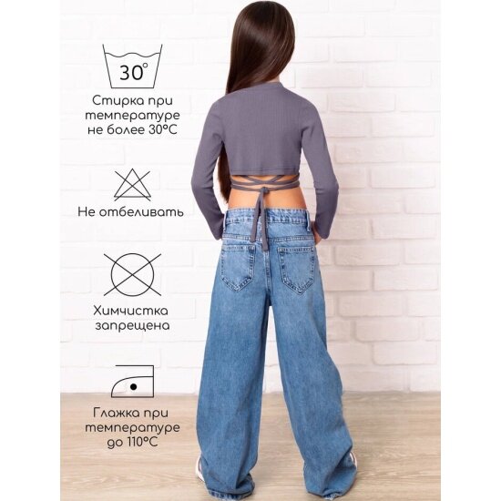 Топ для девочки с длинными рукавами на завязках Amarobaby Generation, синий, размер 152