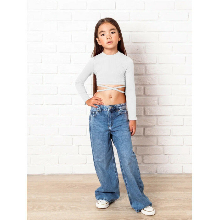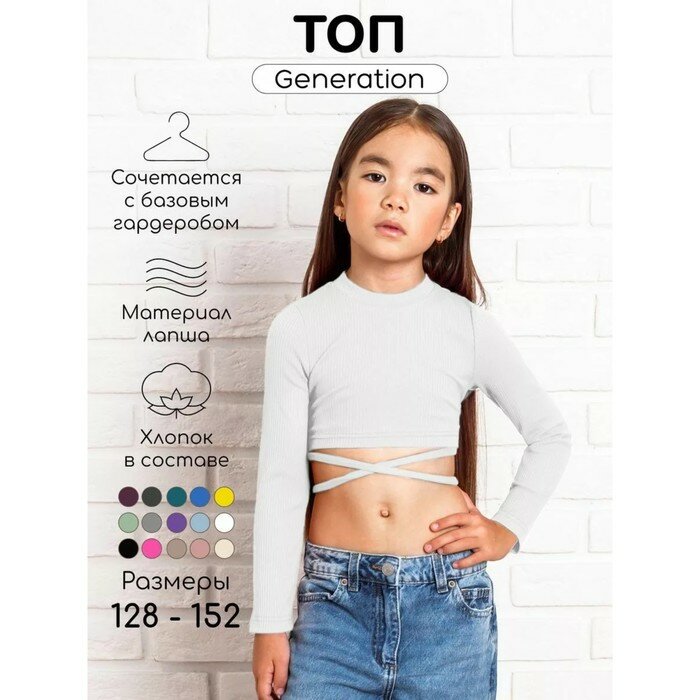 Топ для девочки с длинными рукавами на завязках Amarobaby Generation, белый, размер 128