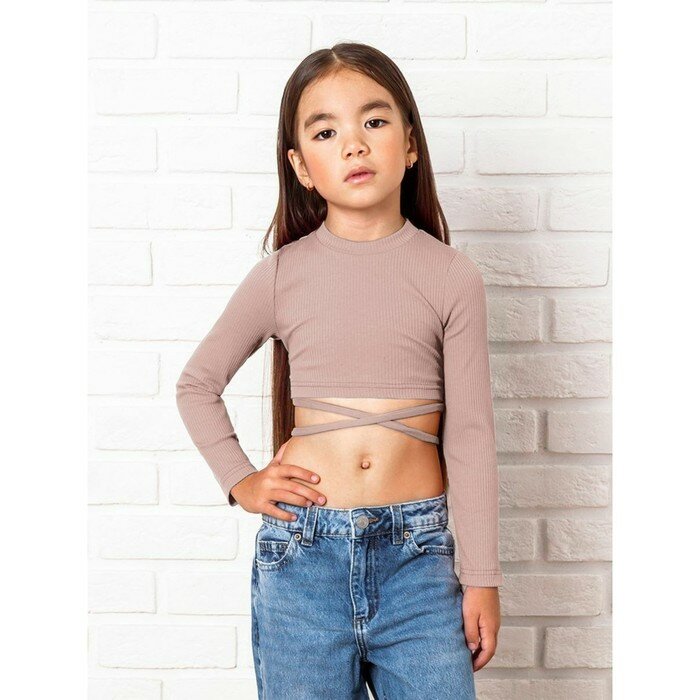 Топ для девочки с длинными рукавами на завязках Amarobaby Generation, бежевый, размер 128