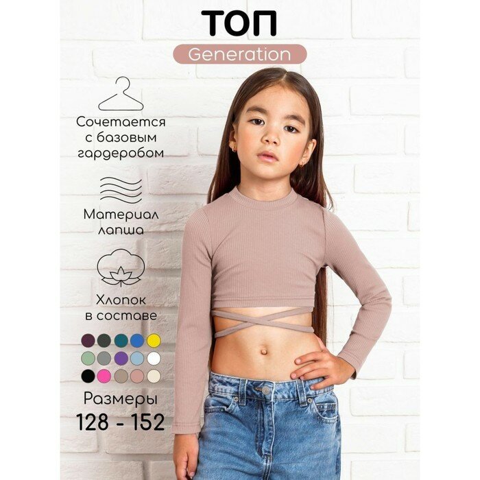Топ для девочки с длинными рукавами на завязках Amarobaby Generation, бежевый, размер 140