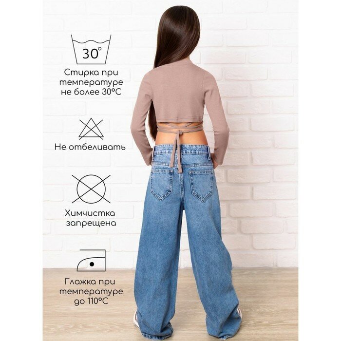 Топ для девочки с длинными рукавами на завязках Amarobaby Generation, бежевый, размер 152