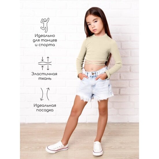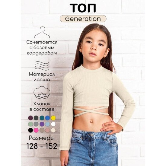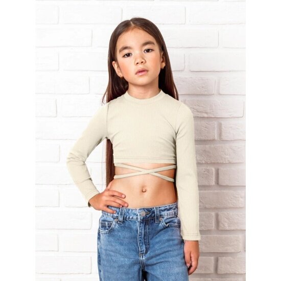 Купить Топ для девочки с длинными рукавами на завязках Amarobaby Generation, молочный, размер 140