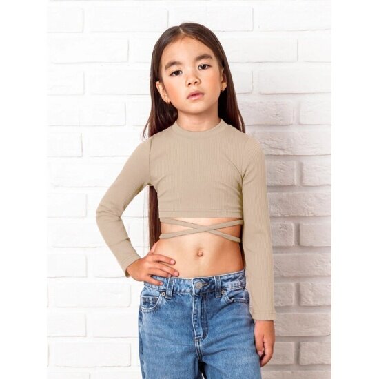 Купить Топ для девочки с длинными рукавами на завязках Amarobaby Generation, бежевый, размер 128