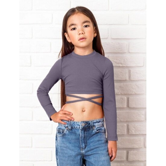 Топ для девочки с длинными рукавами на завязках Amarobaby Generation, графит, размер 134