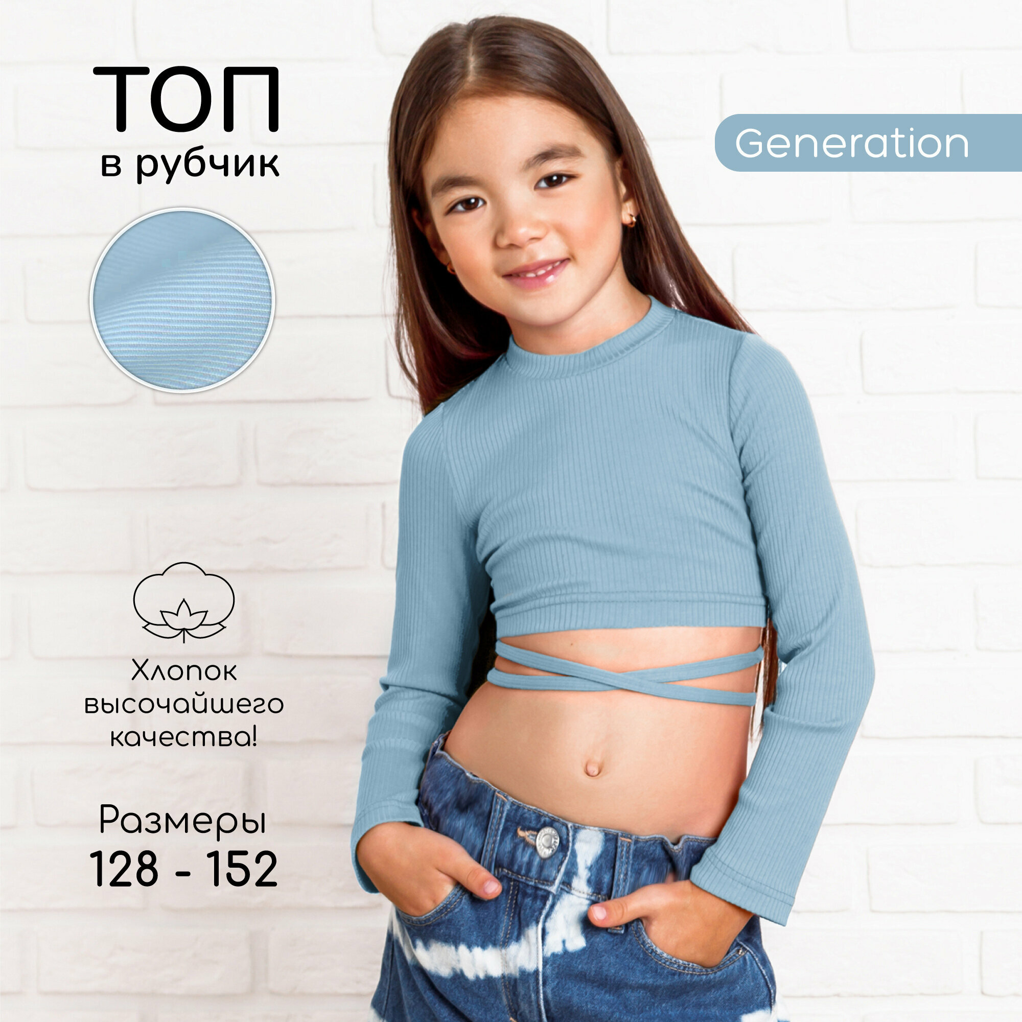 Топ для девочки с длинными рукавами на завязках Amarobaby Generation, голубой, размер 152