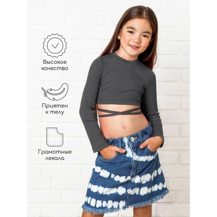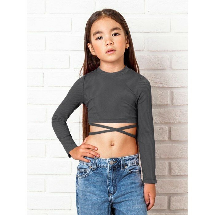 Купить Топ для девочки с длинными рукавами на завязках Amarobaby Generation, графит, размер 128