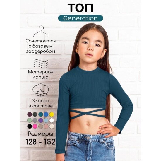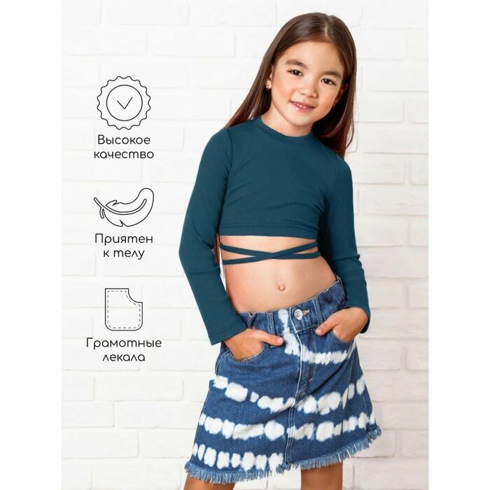 Топ для девочки с длинными рукавами на завязках Amarobaby Generation, синий, размер 152