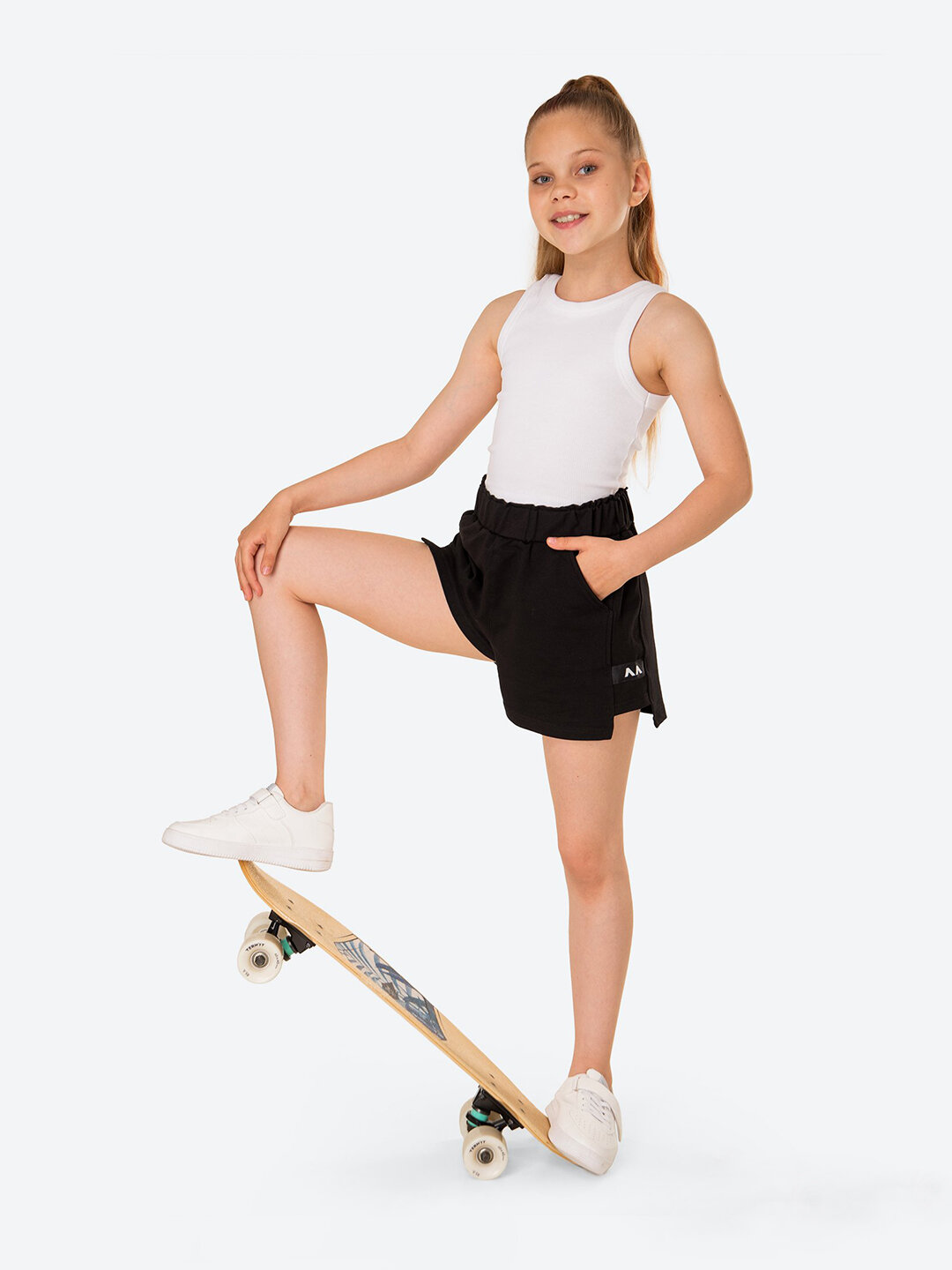 Детские летние шорты спортивные для девочки подростка HappyFox, HFJKAS111 размер 152, цвет черный