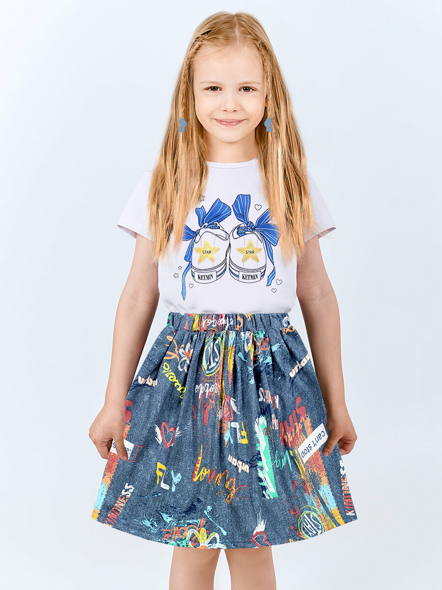 СохранитьЮбка детская в садик KETMIN, размер 140, Джинс интересное:
