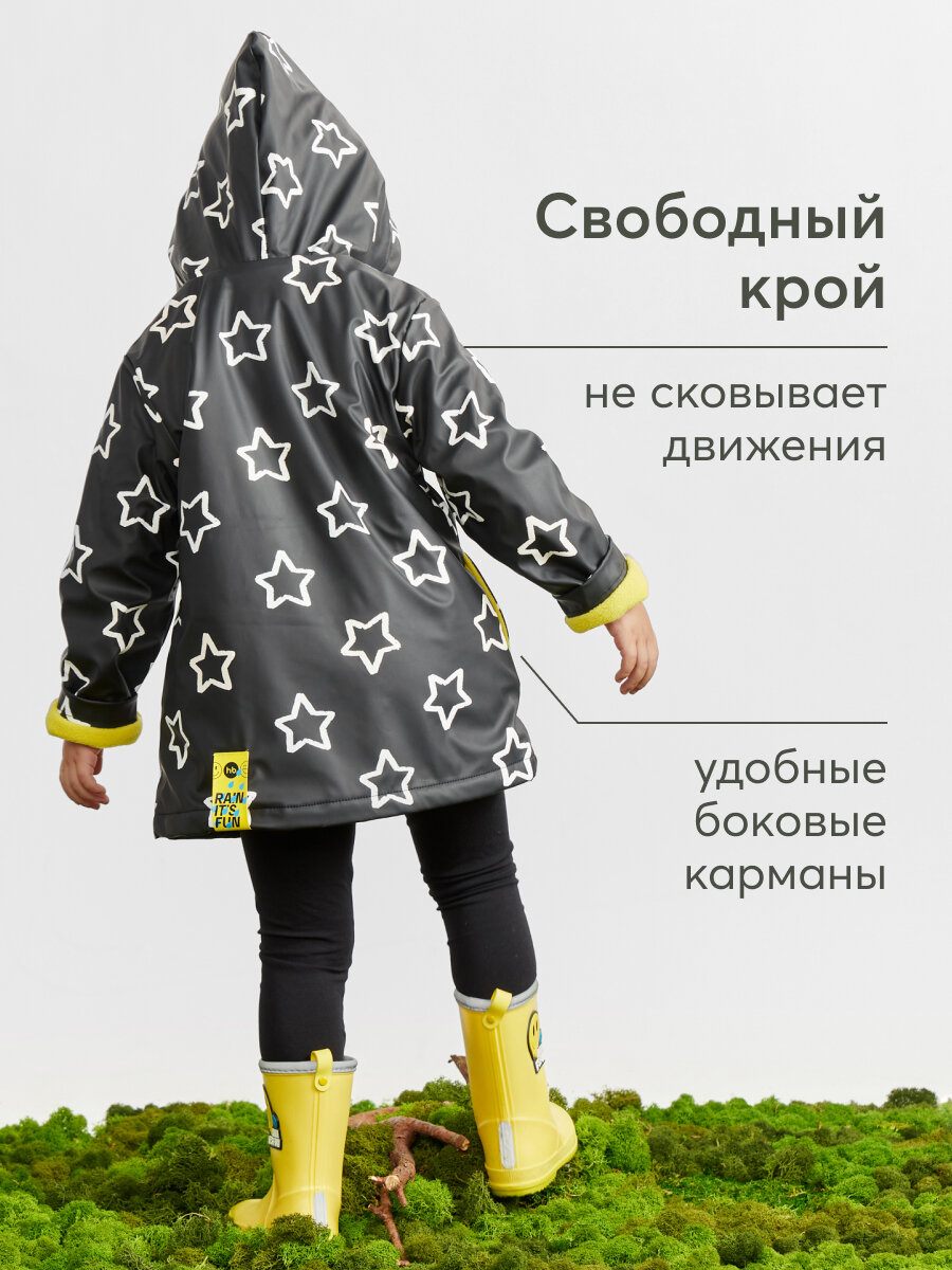 88102, Плащ детский Happy Baby дождевик, плащ-дождевик, меняет цвет под дождём, черный, разноцветный со звездами, 86-92 интересное: