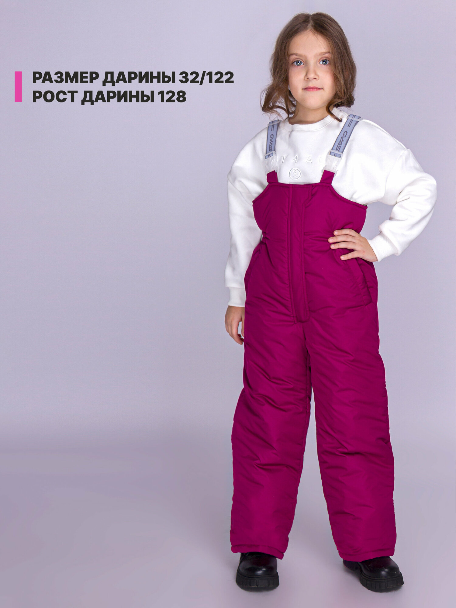 СохранитьЗиминий утепленный бордовый полукомбинезон для девочки непромокаемый из мембраны на резинке с бретелями KAYSAROW Бетси рост 128 интересное: