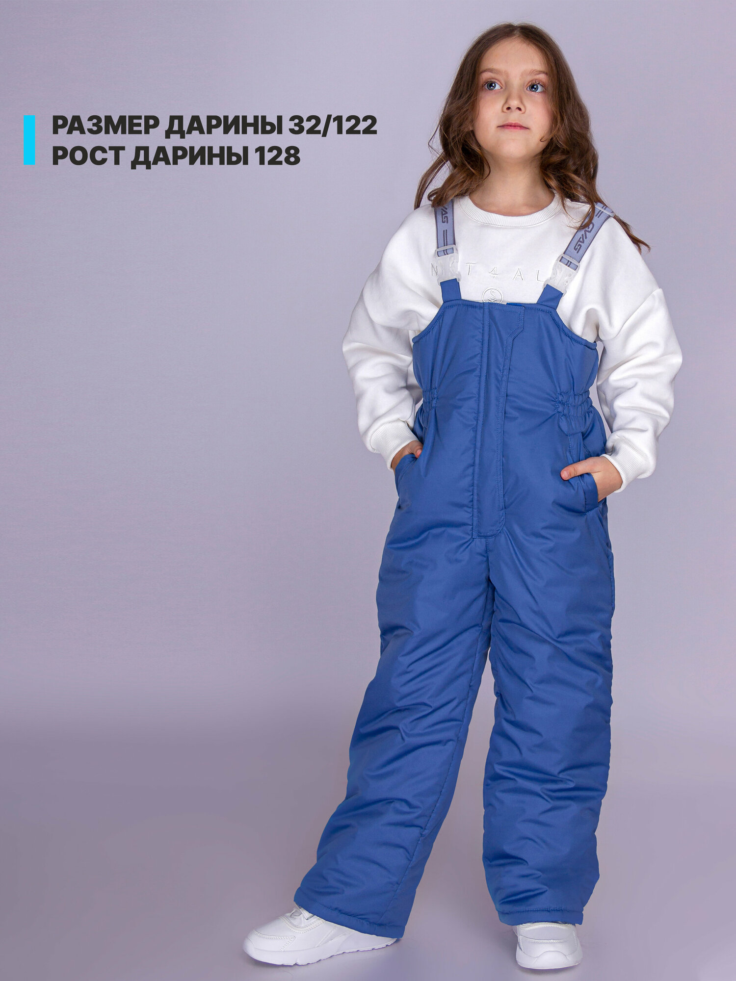Зиминий утепленный полукомбинезон для девочки непромокаемый из мембраны на резинке с бретелями KAYSAROW Бетси лаванда рост 128