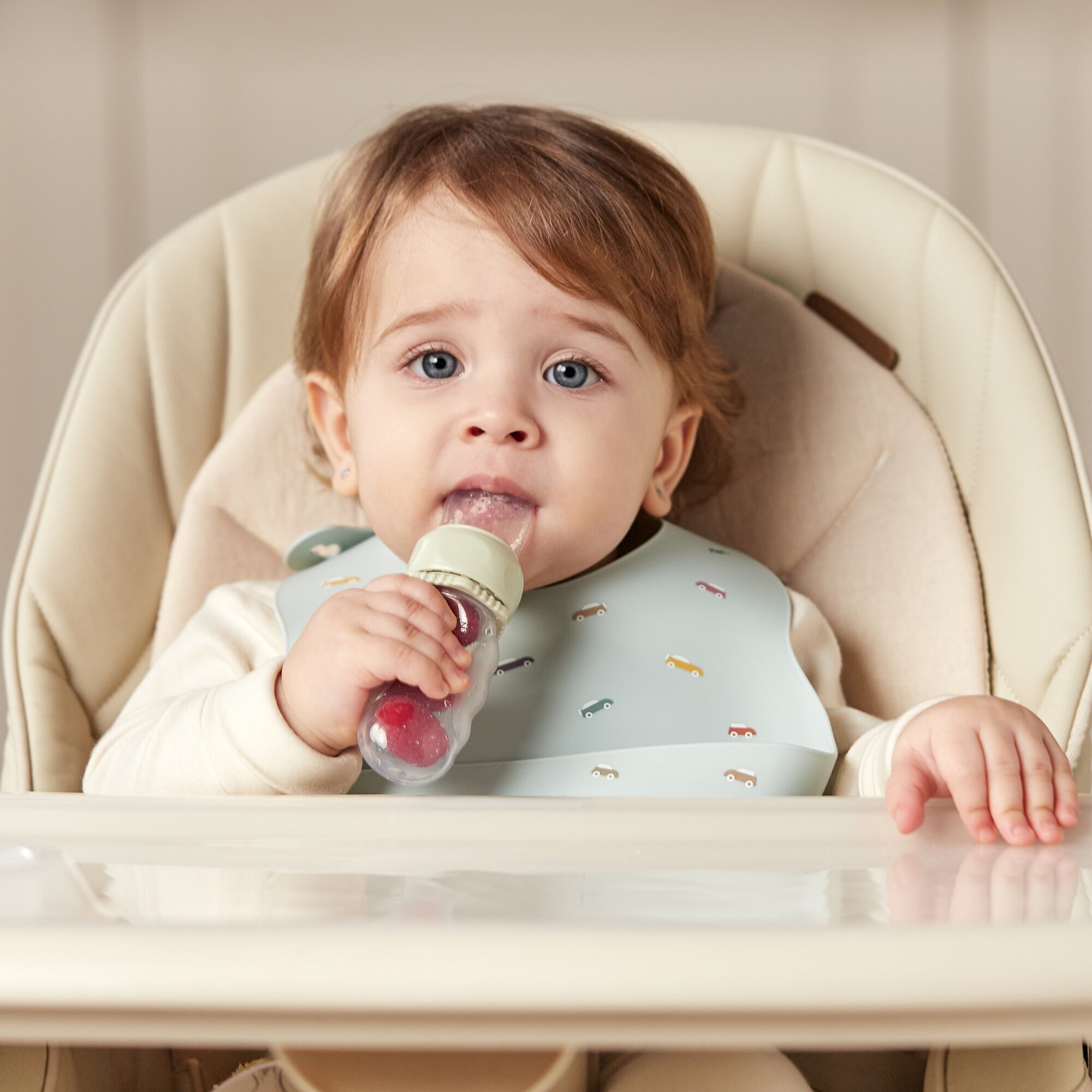 15057, Ниблер-дозатор Happy Baby, ниблер для прикорма, силиконовый, с мерным делением, в футляре, кремовый