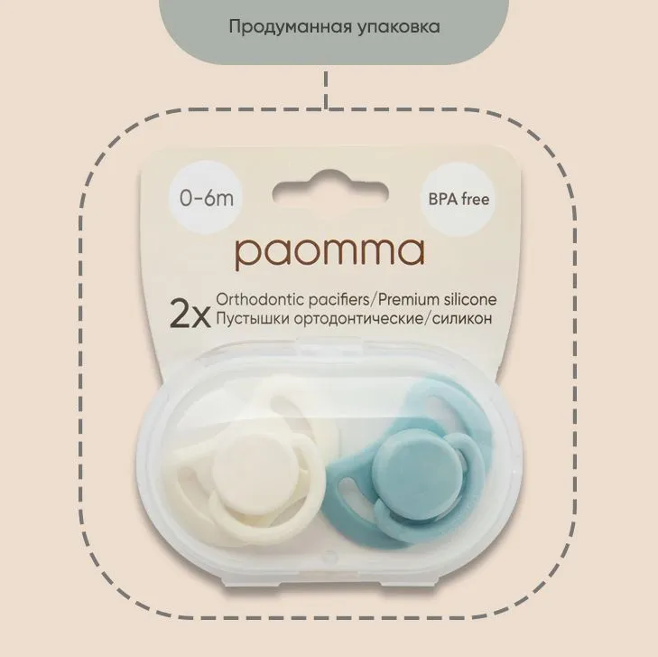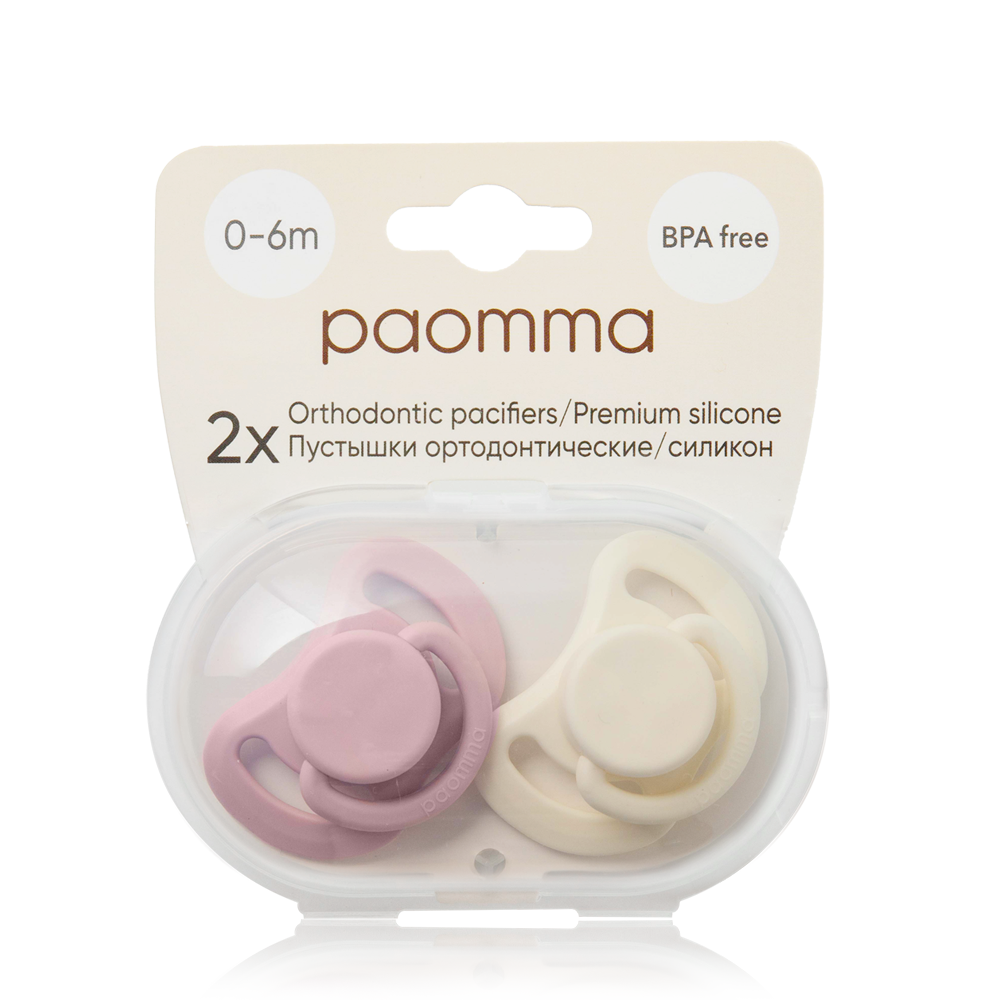 Купить Набор силиконовых пустышек Paomma 0-6 мес., 2 шт. в контейнере, zephyr/buttercream