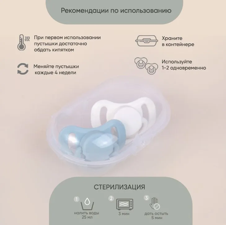 СохранитьНабор силиконовых пустышек Paomma 0-6 мес., 2 шт. в контейнере, zephyr/buttercream интересное: