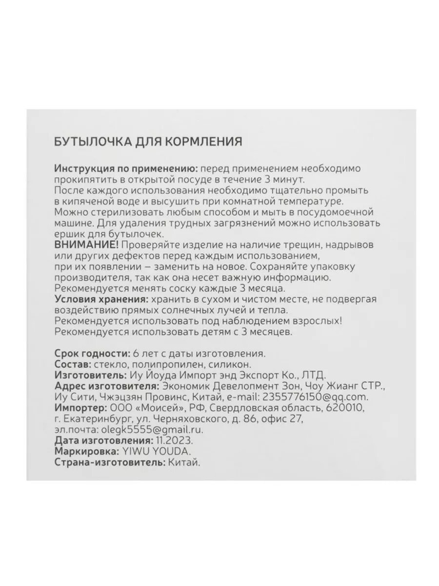 СохранитьБутылочка для кормления Ø50 ШГ 240 мл., стекло, цвет белый интересное: