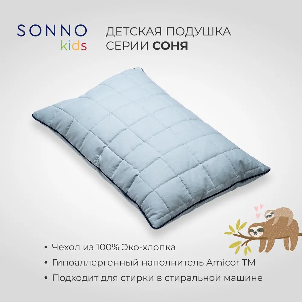 Купить Детская ортопедическая подушка SONNO СОНЯ из 100% хлопка, 40х60 см, гипоаллергенная, с регулировкой высоты
