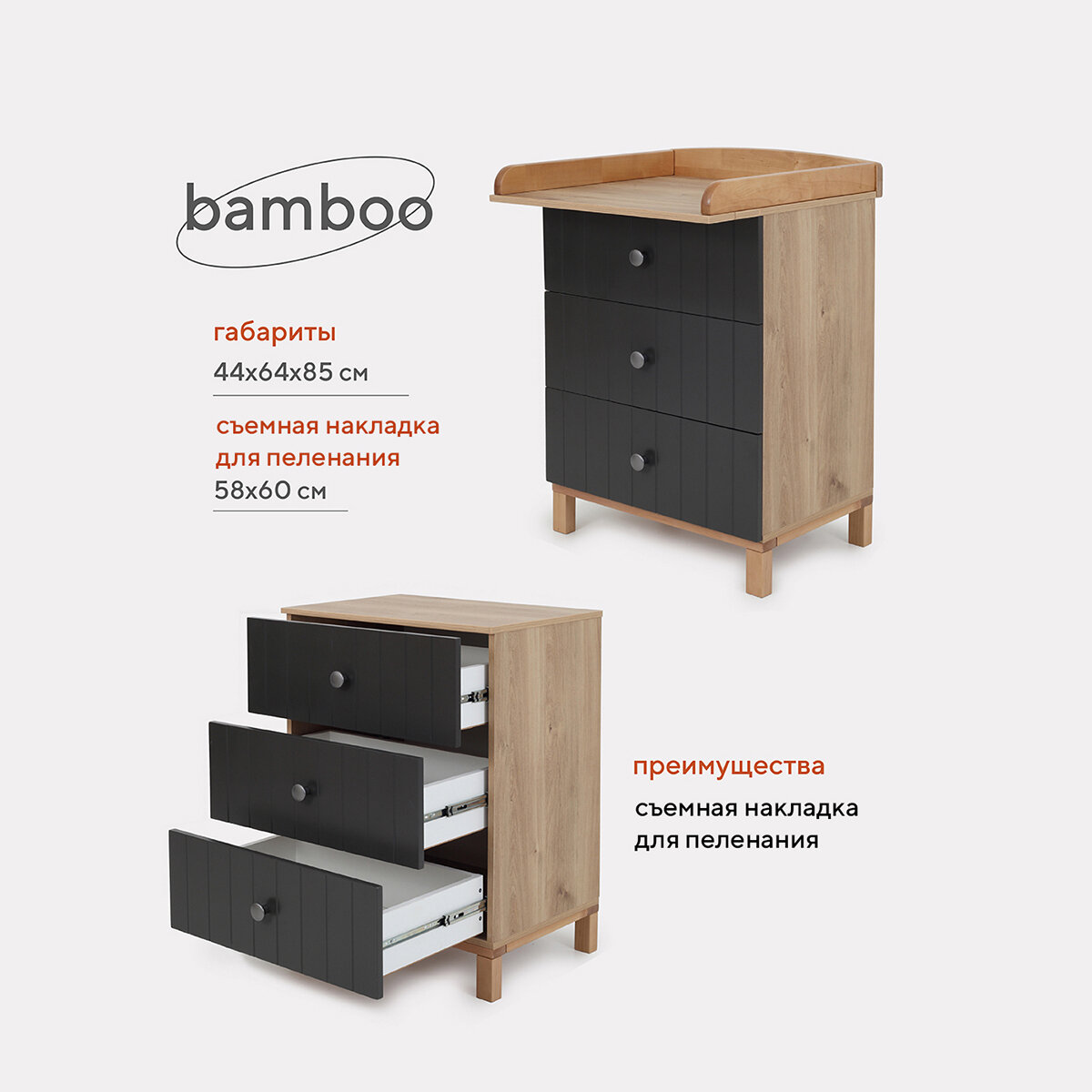Комод пеленальный Rant Bamboo Moon Grey 840/3 (арт.108) интересное: