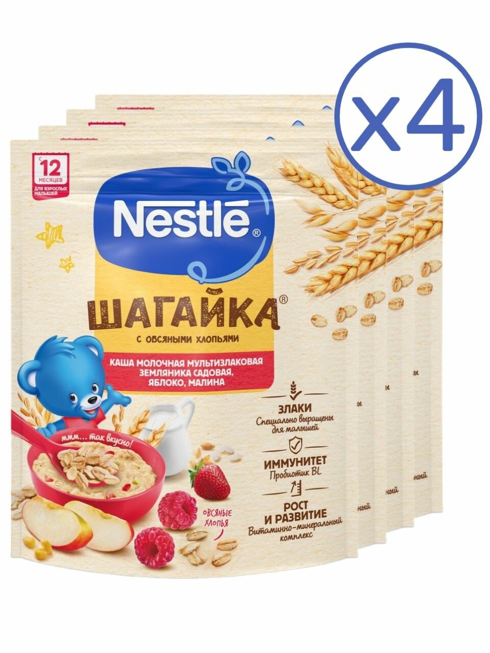 Купить Каша молочная Nestle земляника-яблоко-малина с 12 месяцев 190 г 4 шт